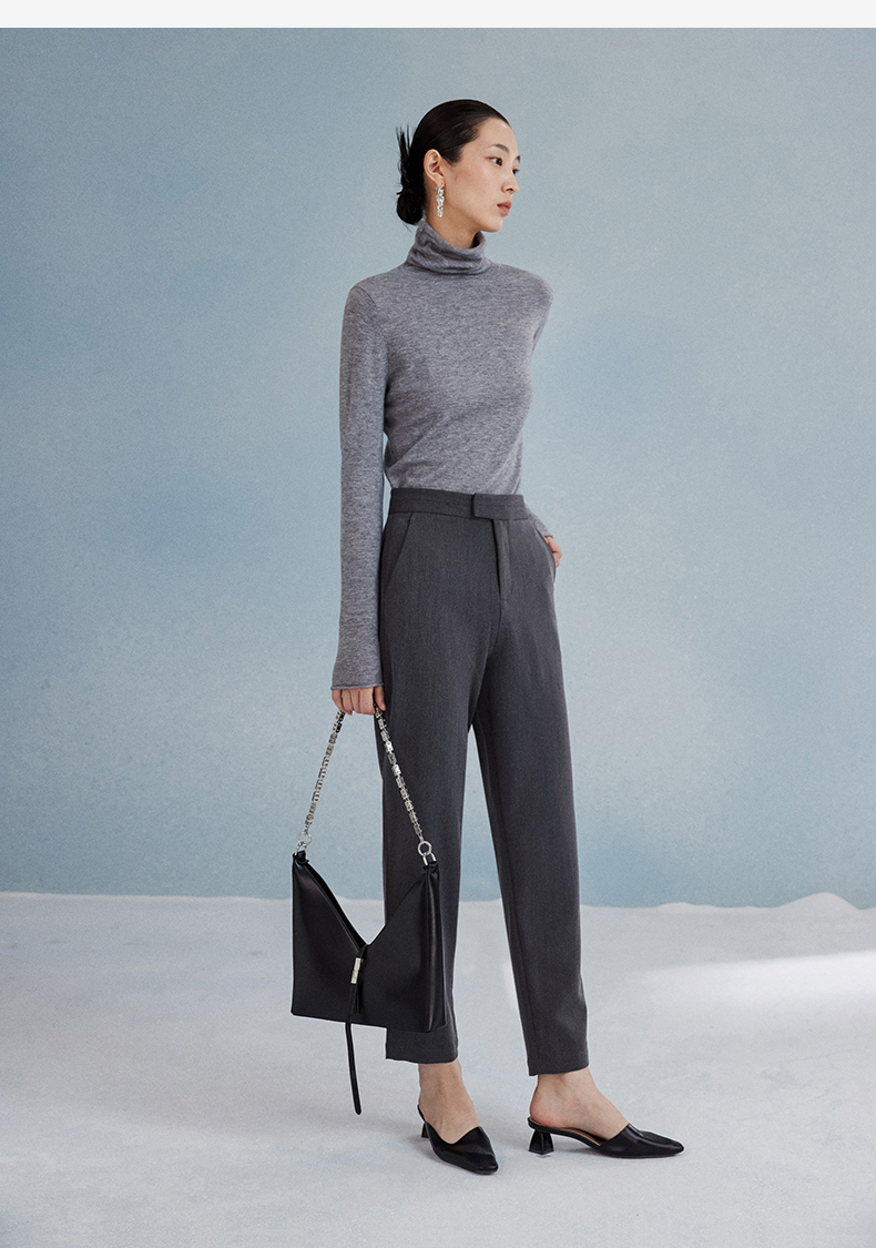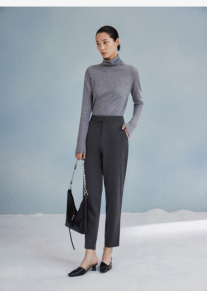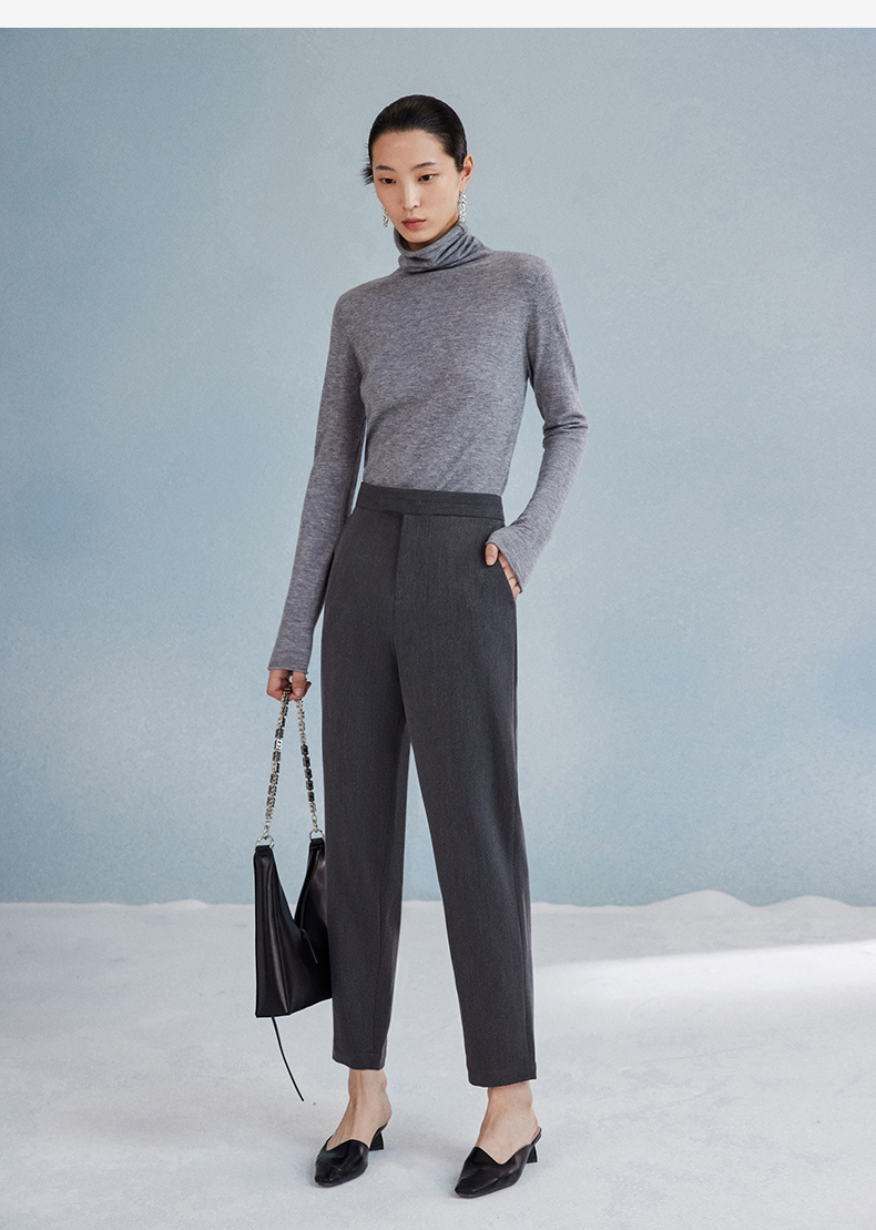 C+IMPRESS/西嘉高腰烟管裤极简显瘦九分直筒西装裤女春秋款