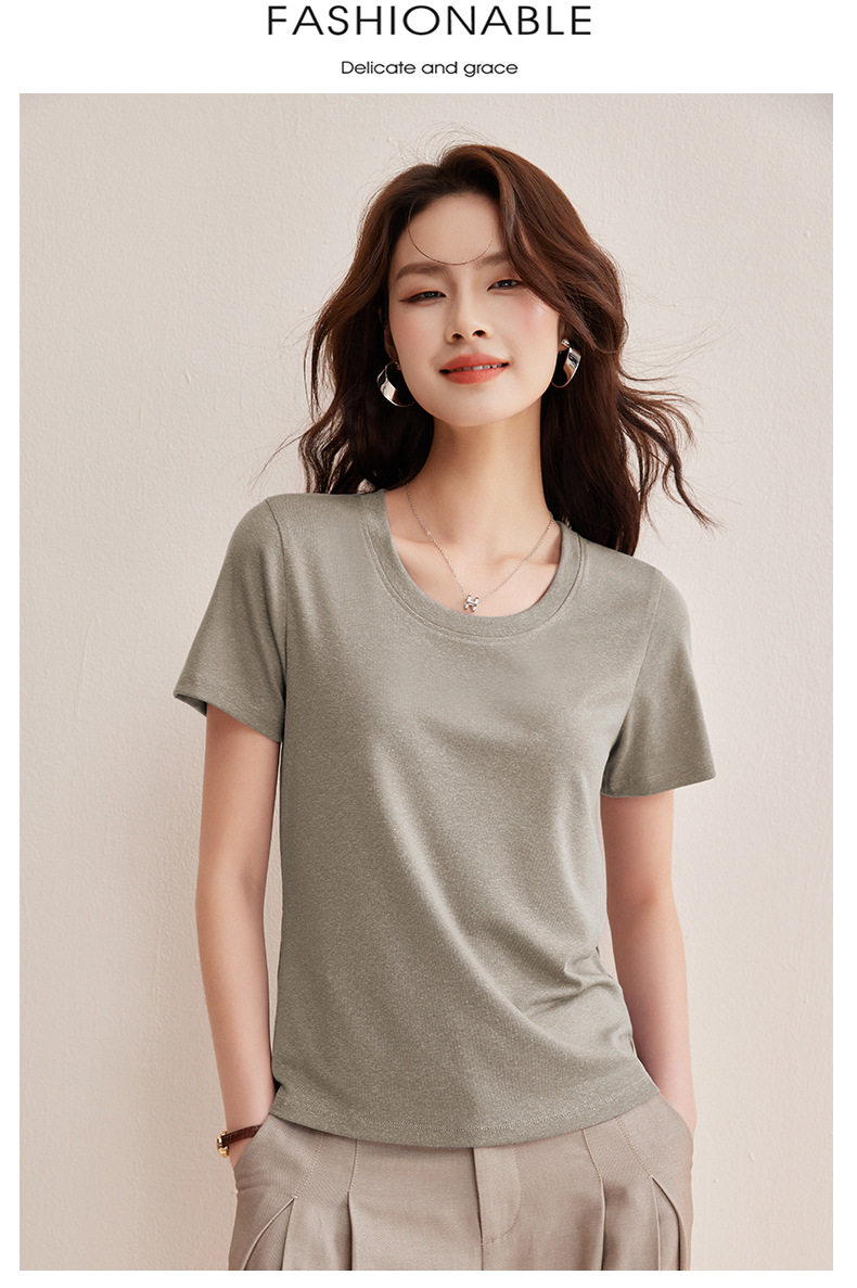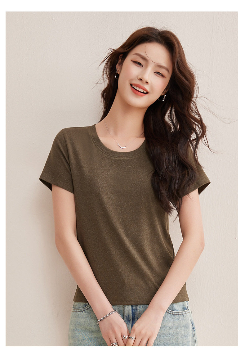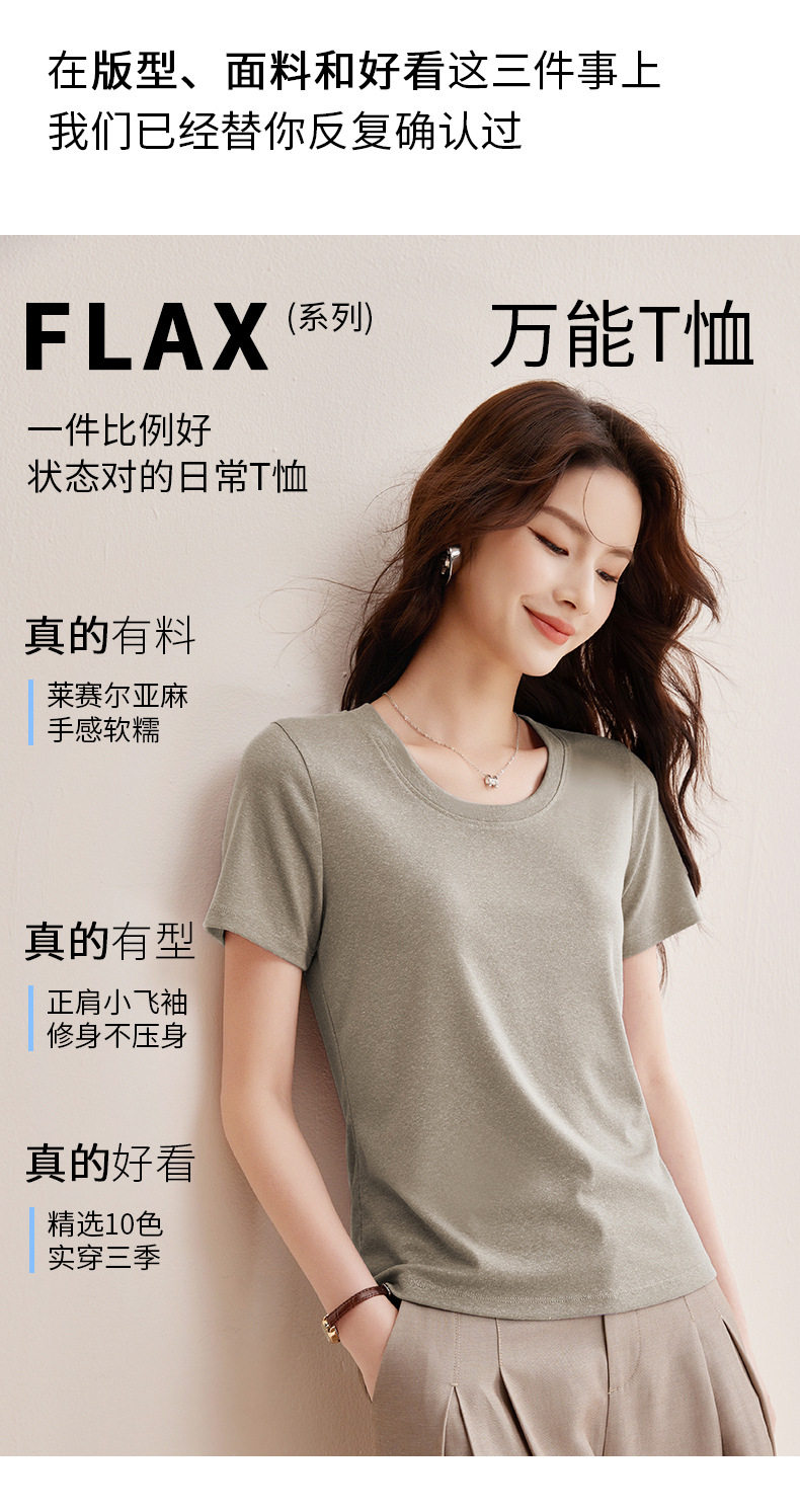 【天丝亚麻T】随心穿会呼吸的清凉亚麻短袖T恤女收背线设计感上衣    BY-M760 商品图2