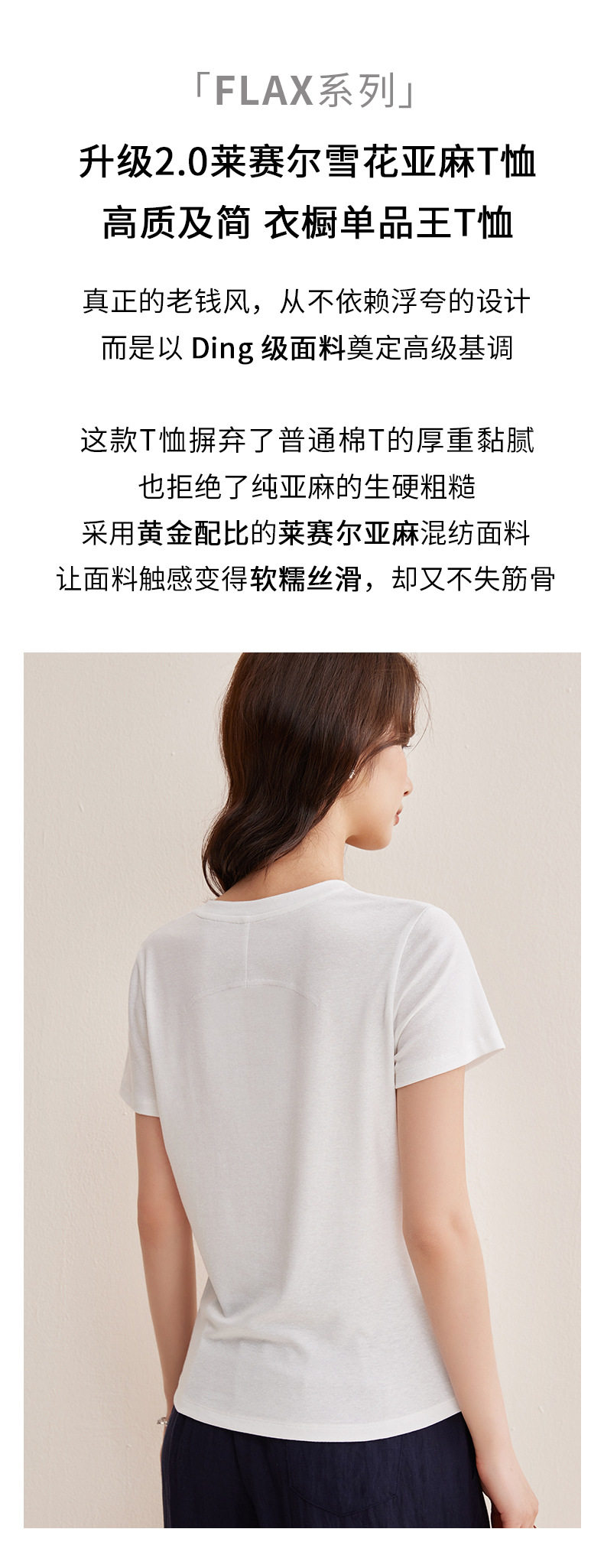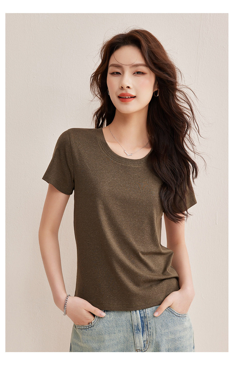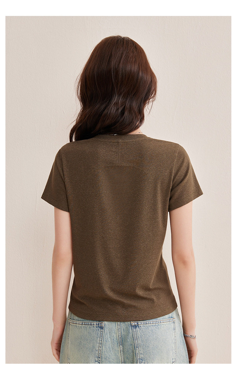 【天丝亚麻T】随心穿会呼吸的清凉亚麻短袖T恤女收背线设计感上衣    BY-M760 商品图2