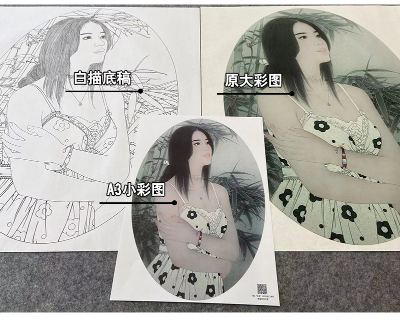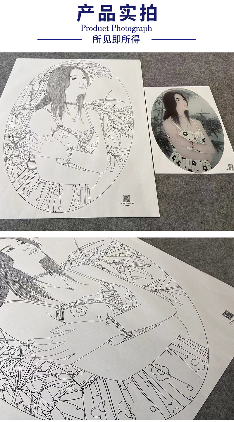 【大彩图】盘虎杰工笔画白描底稿小品现代人物高清打印稿HJ50