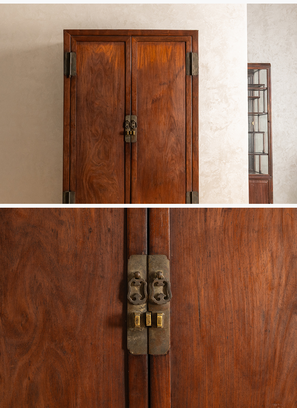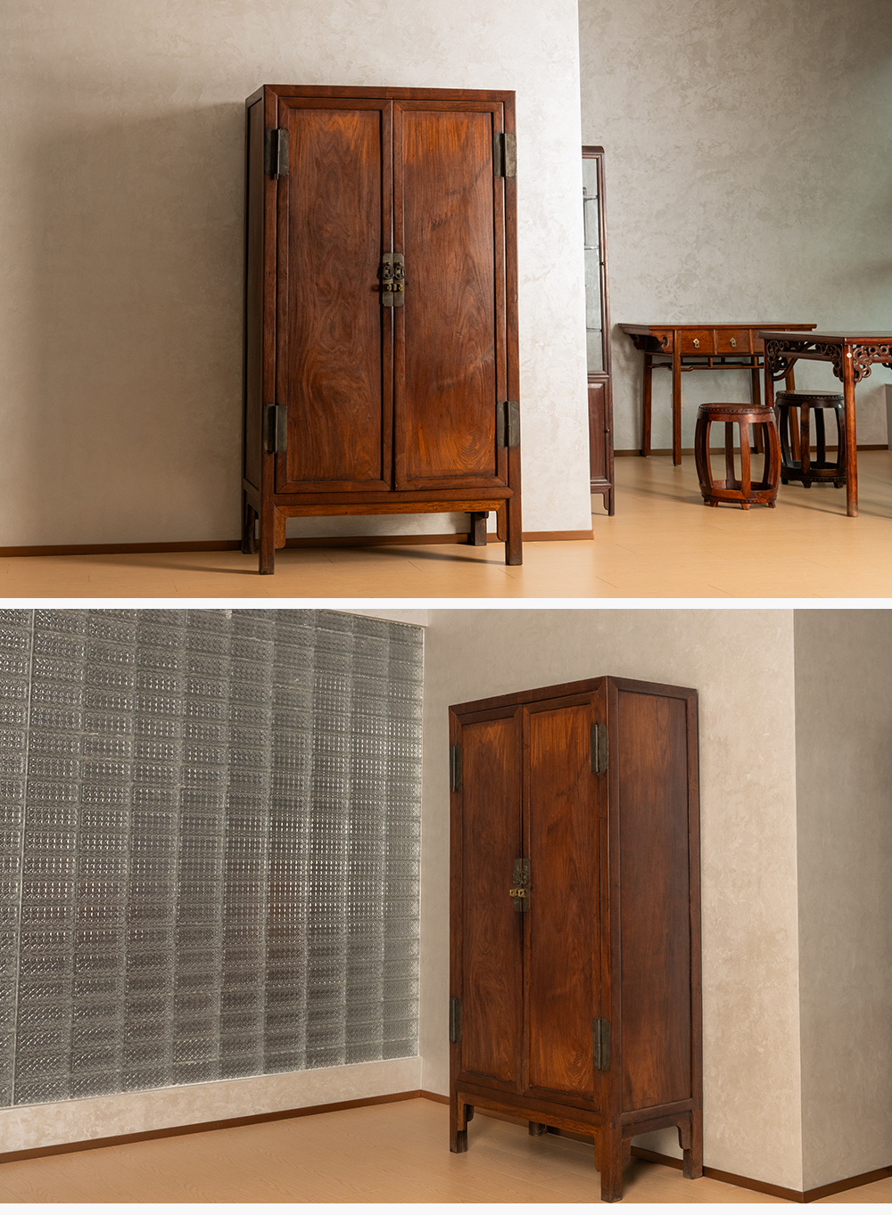 清 红木券口靠背玫瑰椅成套(两椅一几)