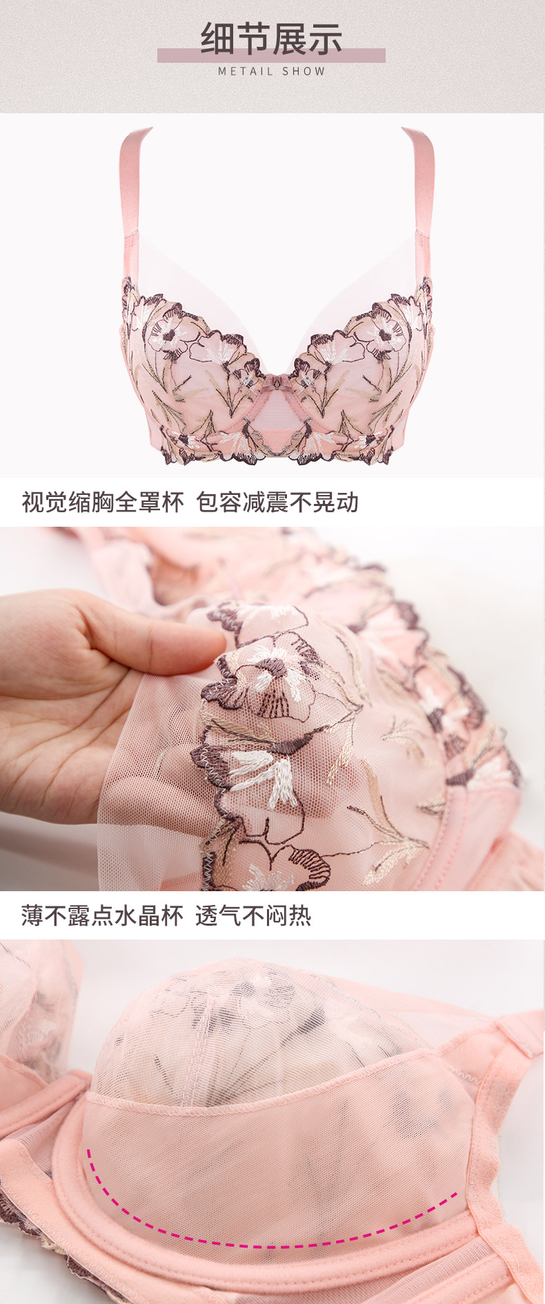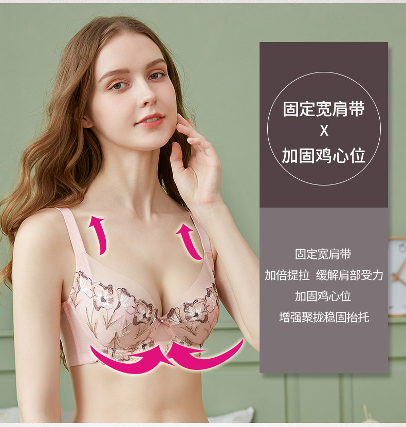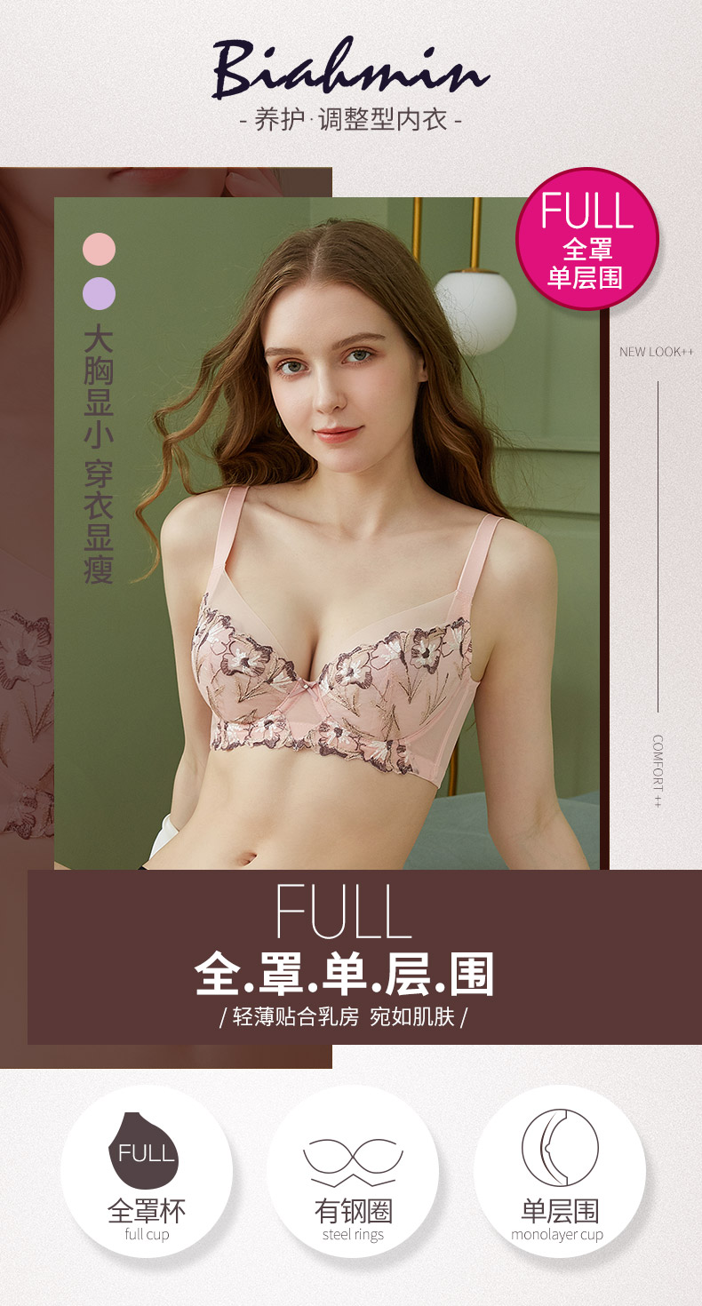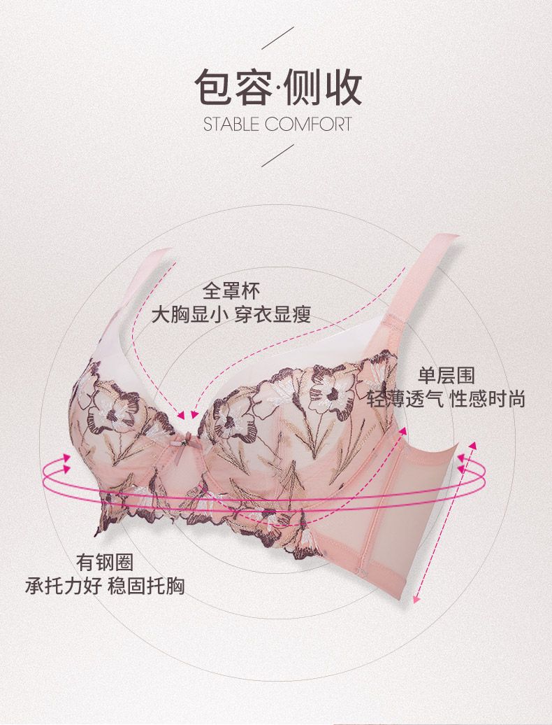 贝佳人新聚拢文胸蕾丝收副乳大显小美背调整内衣全包胸罩BW92903