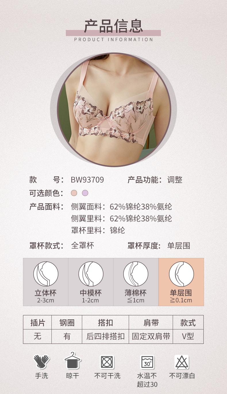 贝佳人“南法假日”3/4中厚模杯围文胸-BW912207