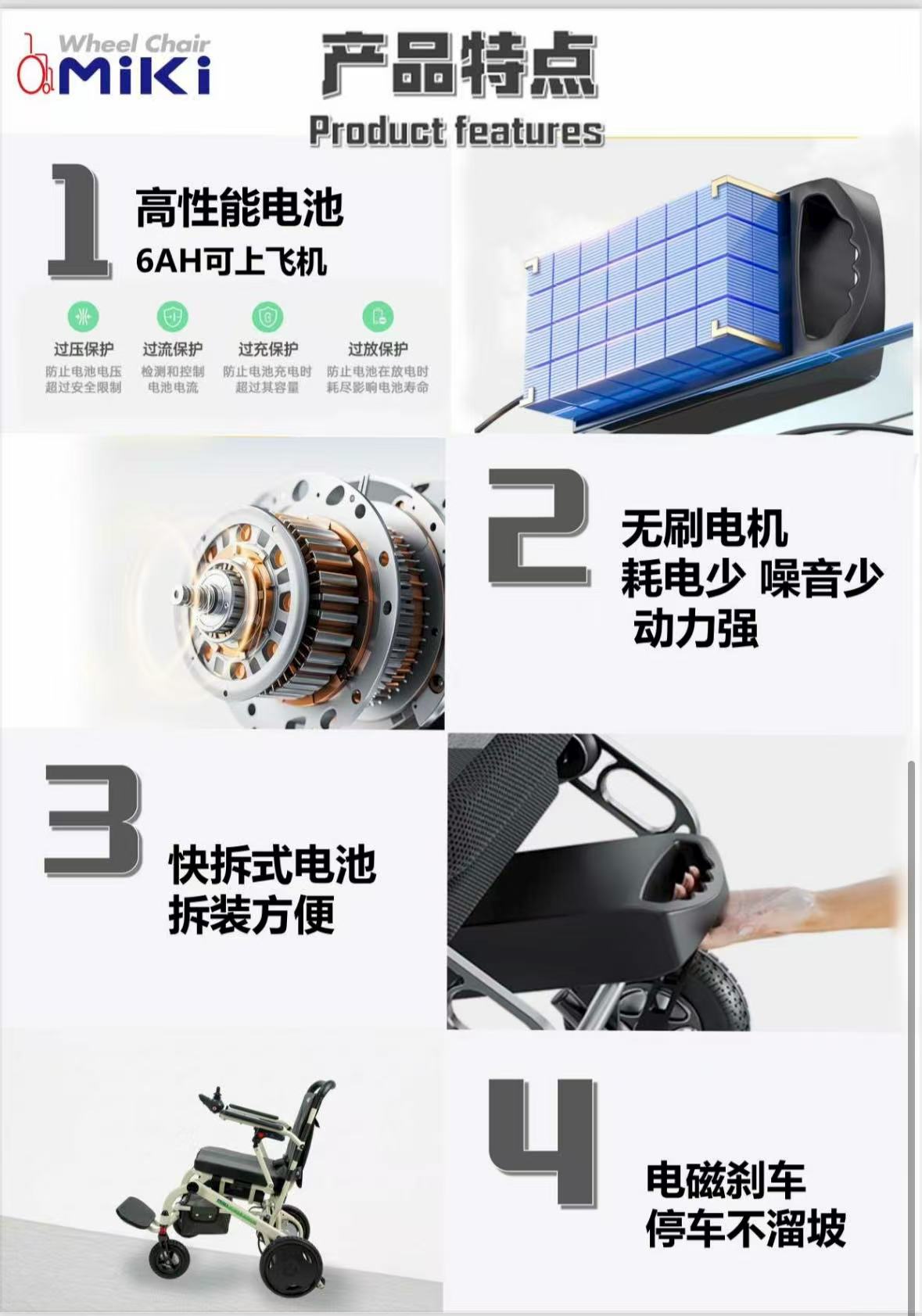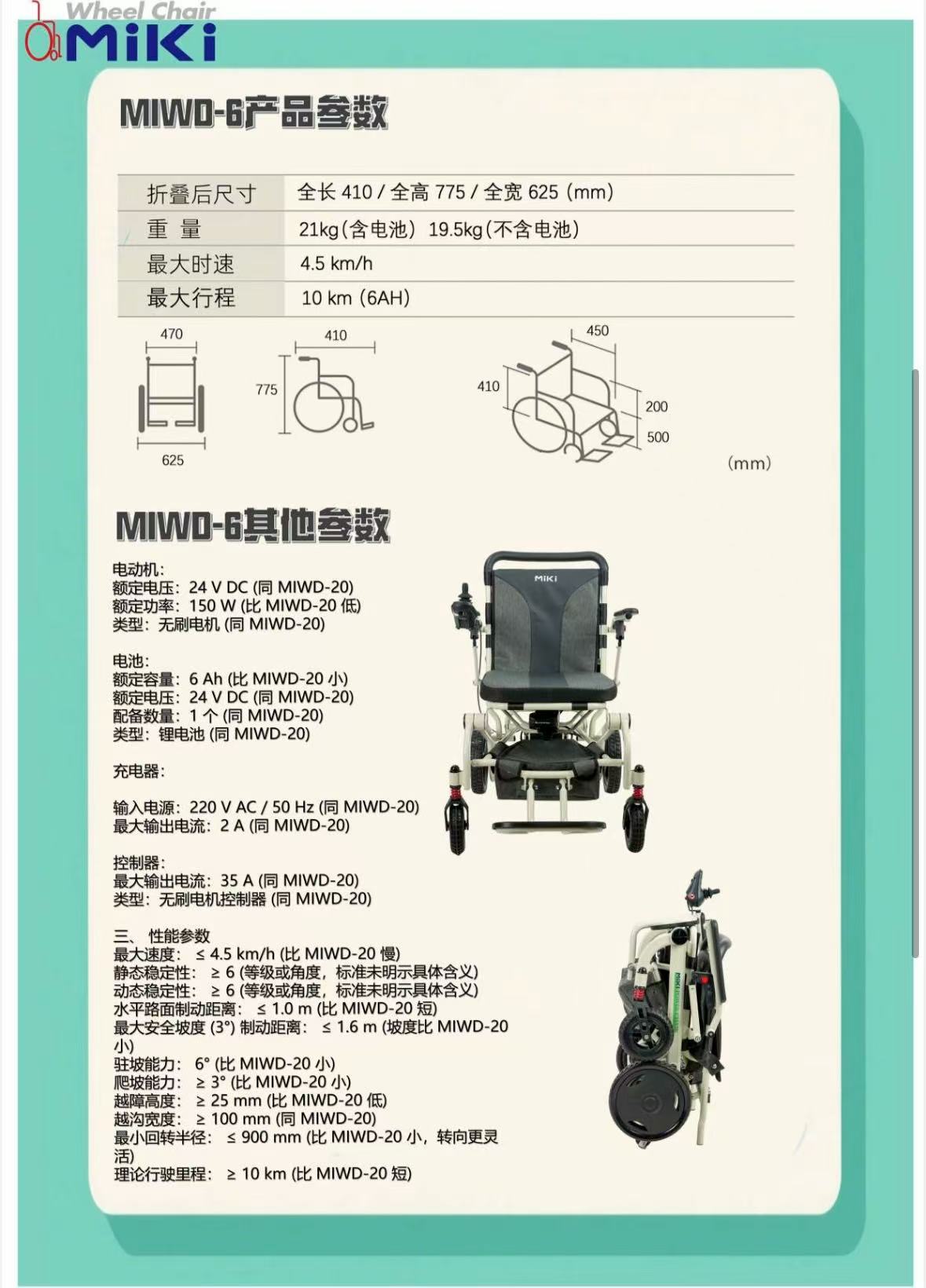 日本MIKI三贵电动轮椅车MIWD-6 可带上飞机智能全自动折叠轻便老年人代步车灵活四轮