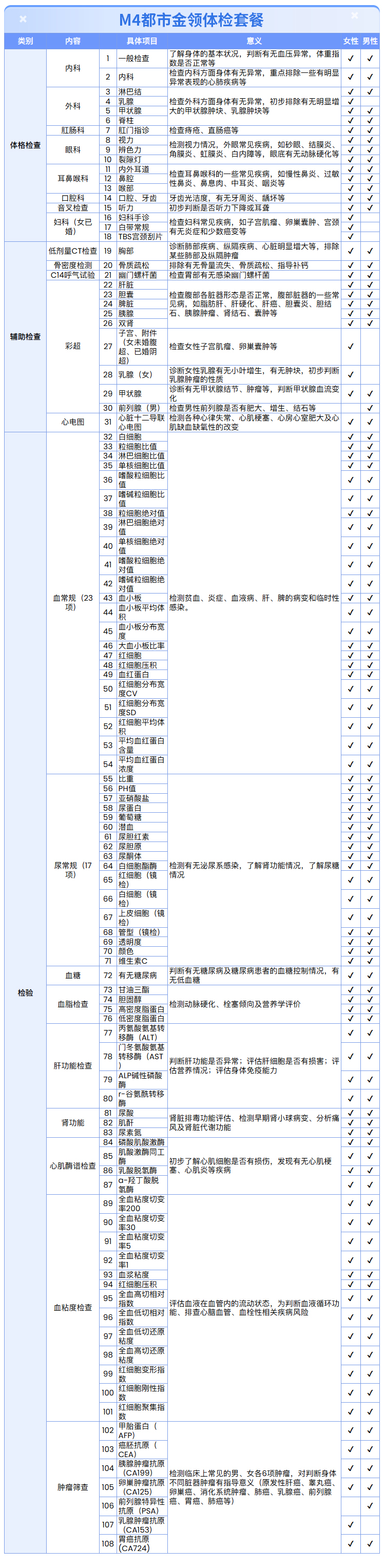【中青年|精选升级】含胸部CT+C14+七彩超+心肌酶谱+肿瘤六项 M4