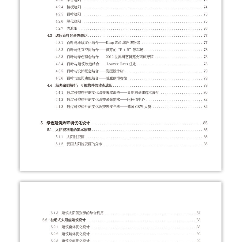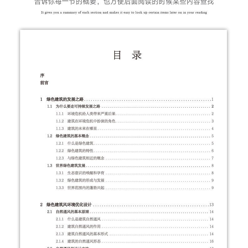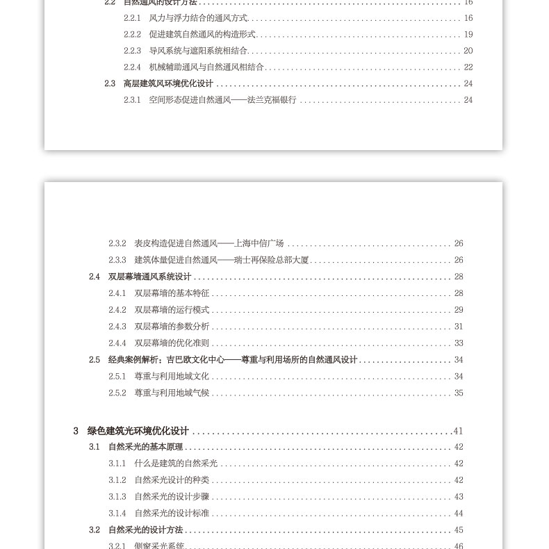 人们对建筑的功能及性能的要求是伴随着社会进步和发展而不断变化的,从遮风挡雨到冬暖夏凉再到四季如春,从土胚茅房到土楼窑洞再到土木砖瓦,从砌体砖混到钢筋混凝土再到钢结构,人类已经认识到只有走绿色建筑的生态文明之路,才是建筑业可以持续发展的正确道路。本书主要采用分系统讲述的方法,内容包括:绿色建筑概论、绿色建筑风环境优化设计、绿色建筑光环境优化设计、绿色建筑遮阳系统设计、绿色建筑热环境优化设计、绿色建筑 节水系统设计、以及绿色建材应用等。本书能够促进可持续发展理念的建立,解决正向绿色设计的难点,拓展方案创作到绿色技术深化,为绿色建筑设计提供更多经验与感悟。