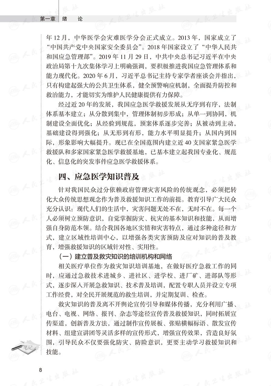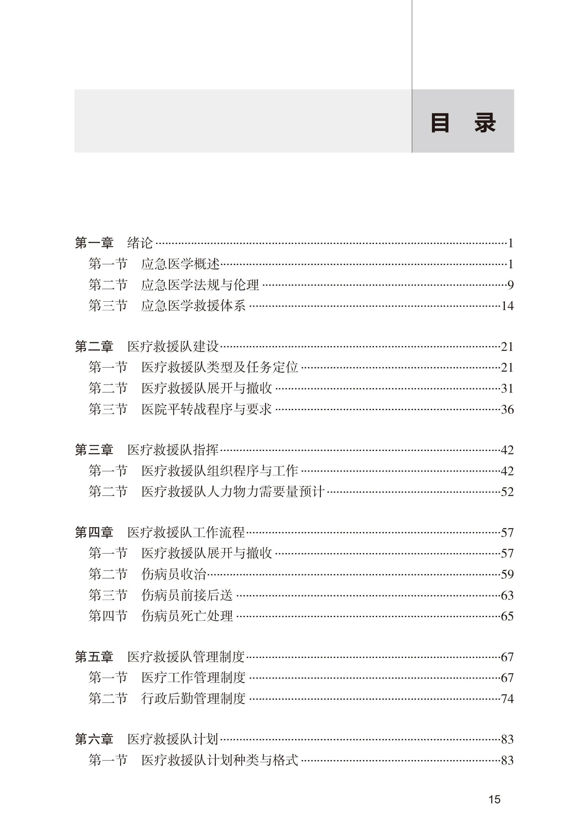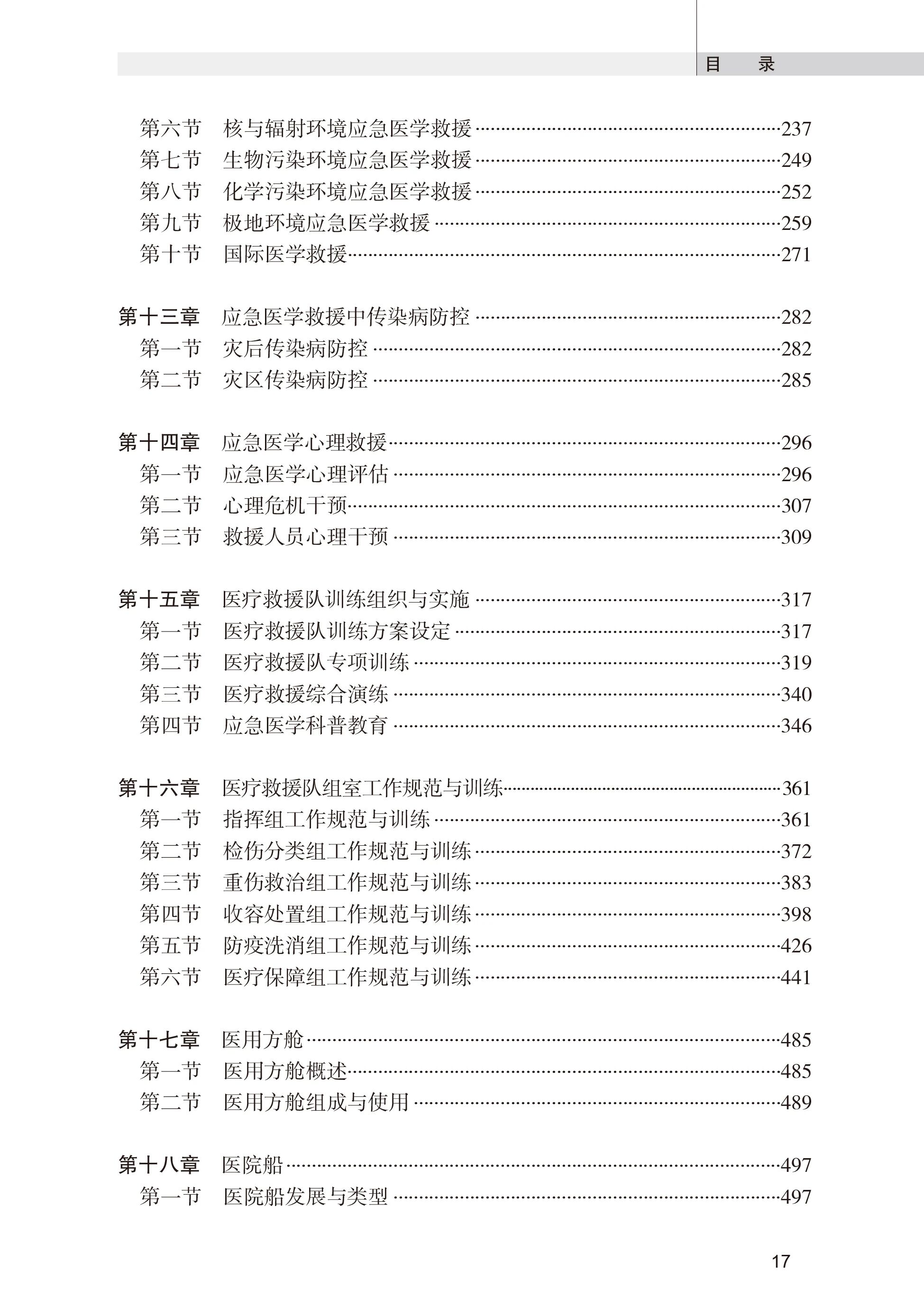 《中国创伤救治培训:应急培训》系统阐述应急医疗队建设、训练和考核等,全面介绍狭窄空间、城市灾难、核生化环境、极地和国际医学救援,详细论述医用方舱、医院船和卫生列车等机动救援平台,特别增加了模拟伤病员伤效化妆,内容新颖,重点突出,对于应急医疗队建设有较大帮助。