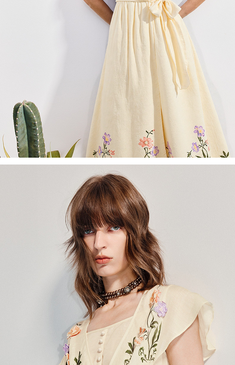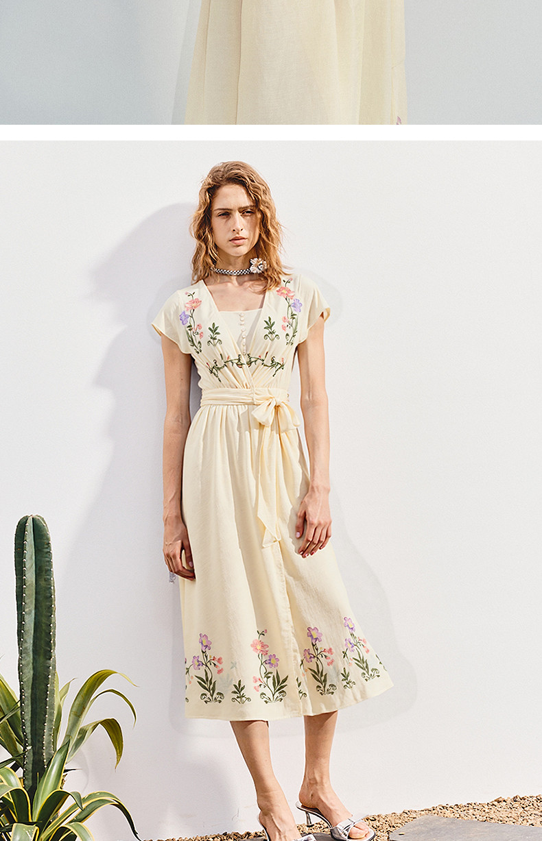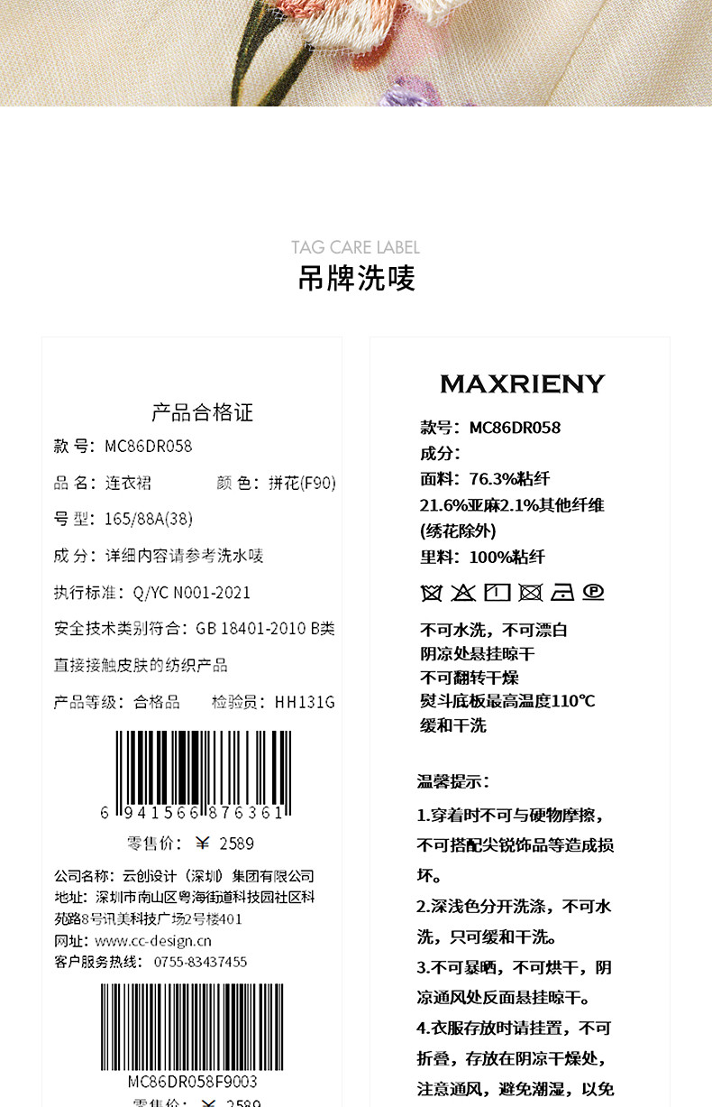 【杨超越同款】MAXRIENY优雅度假风连衣裙25夏款法式田园系带长裙(货号:MC86DR058)