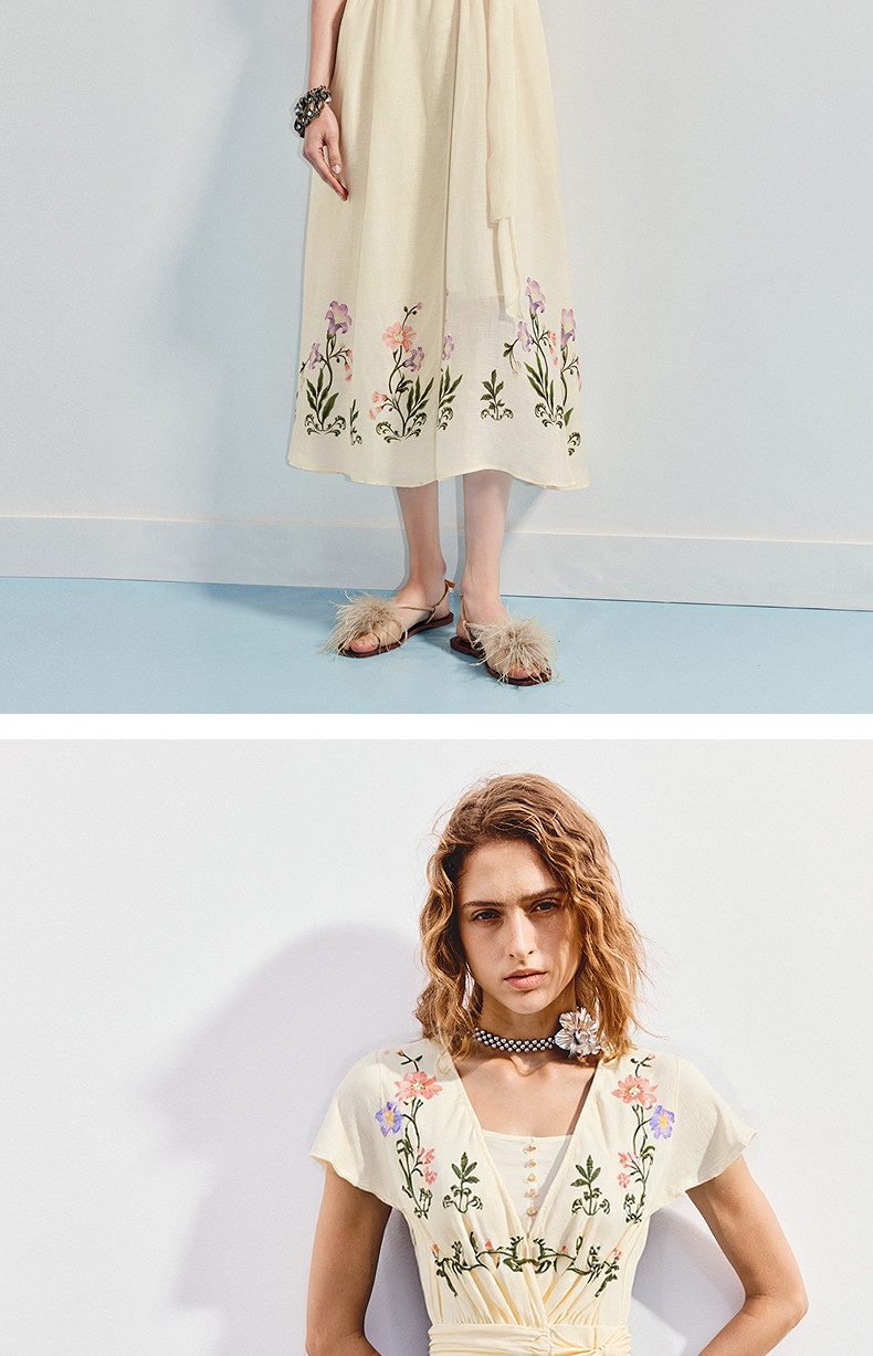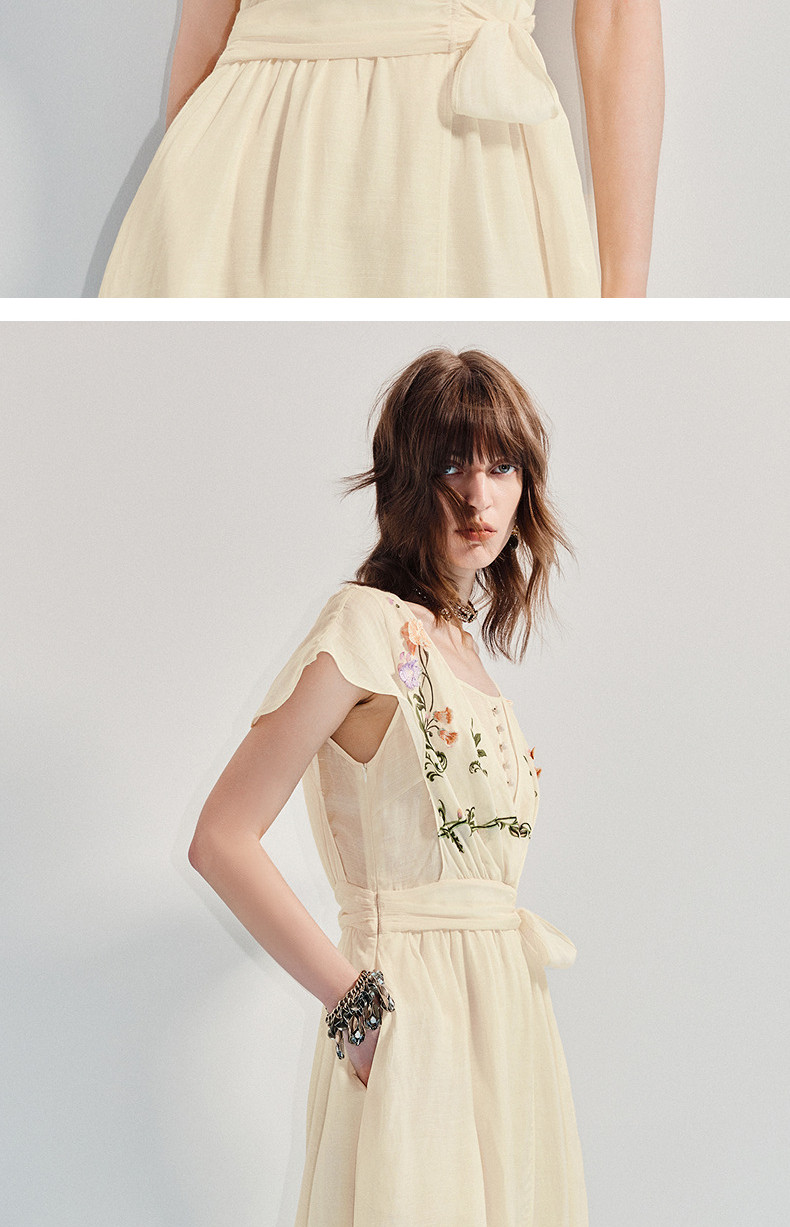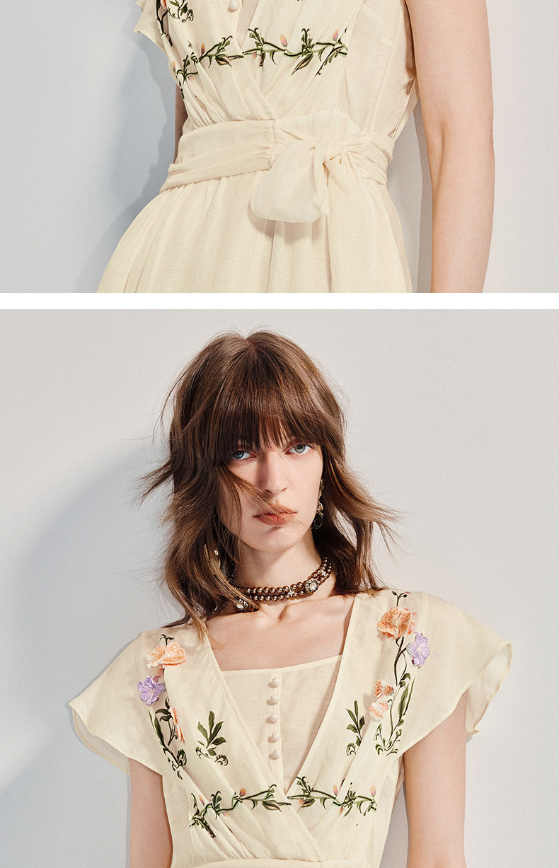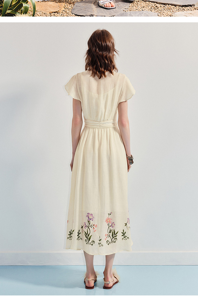 【杨超越同款】MAXRIENY优雅度假风连衣裙25夏款法式田园系带长裙(货号:MC86DR058)