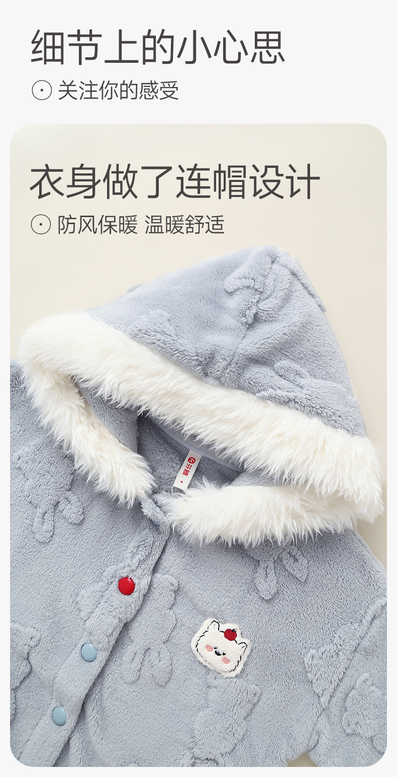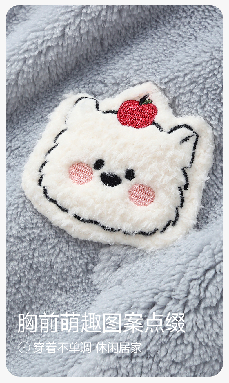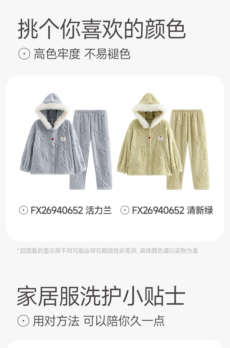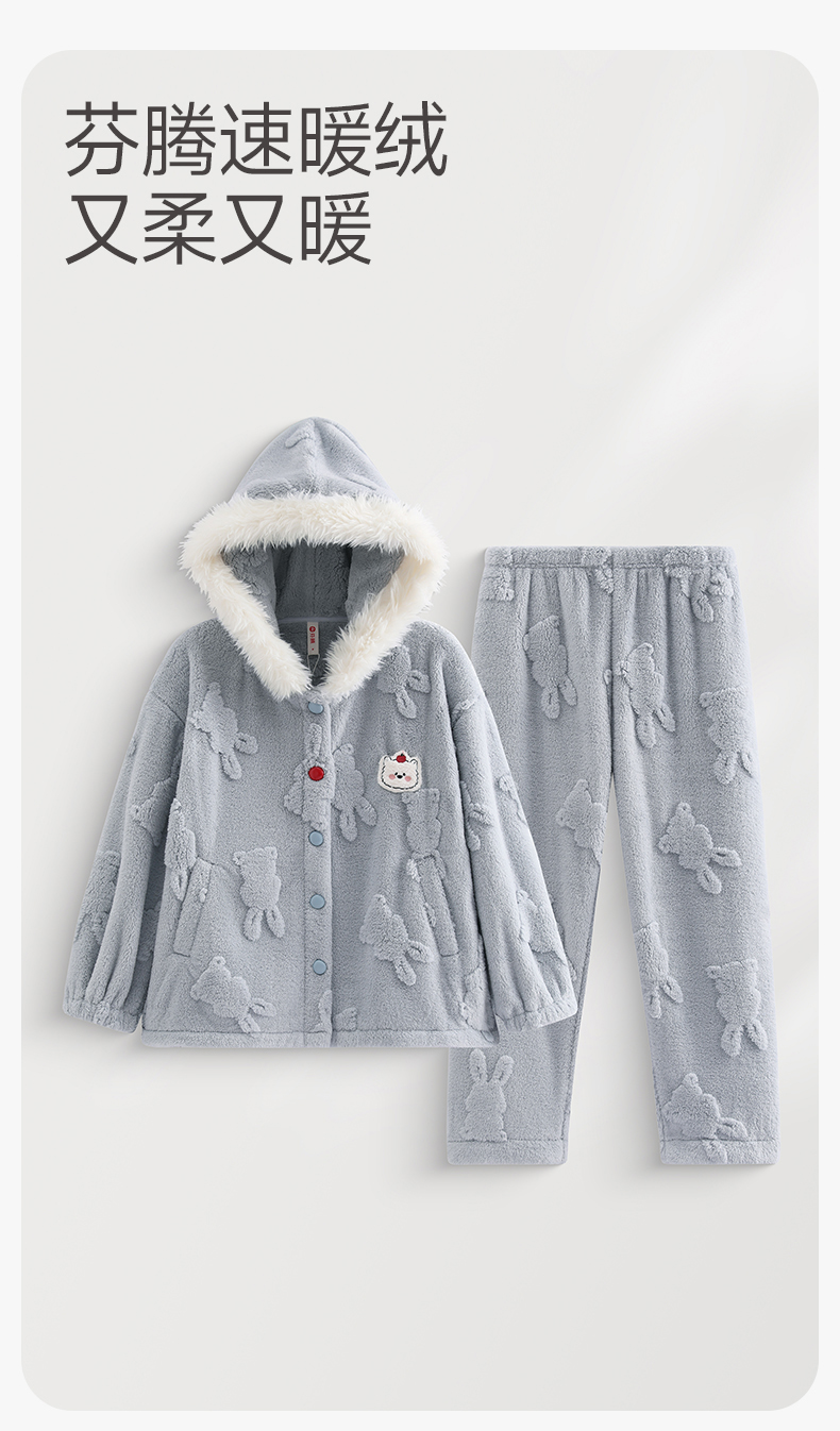 芬腾女士珊瑚绒睡衣秋冬季加绒加厚连帽套装女款法兰绒可爱家居服