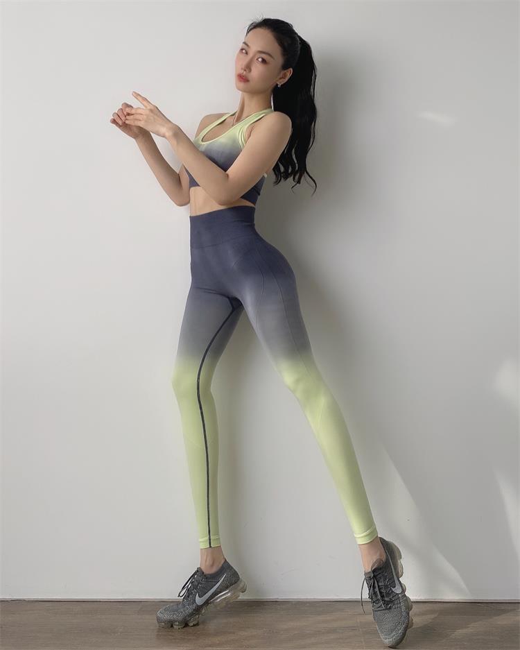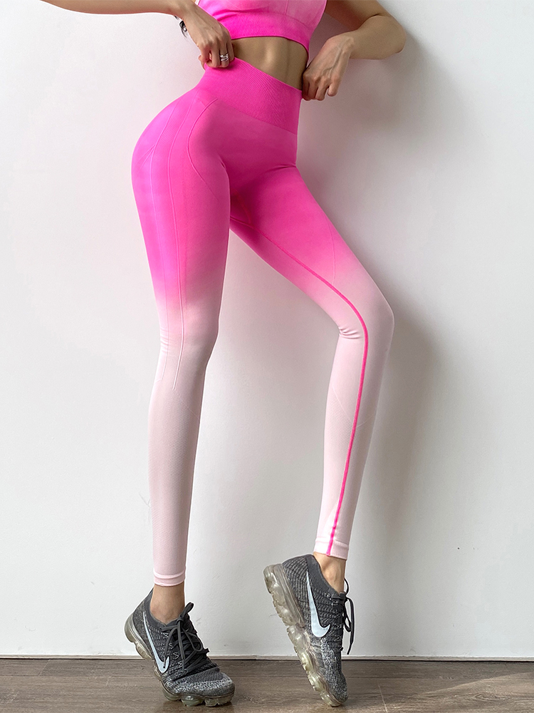 蜜桃翘臀瑜伽裤 女渐变色高腰提臀紧身健身裤跑步速干运动裤