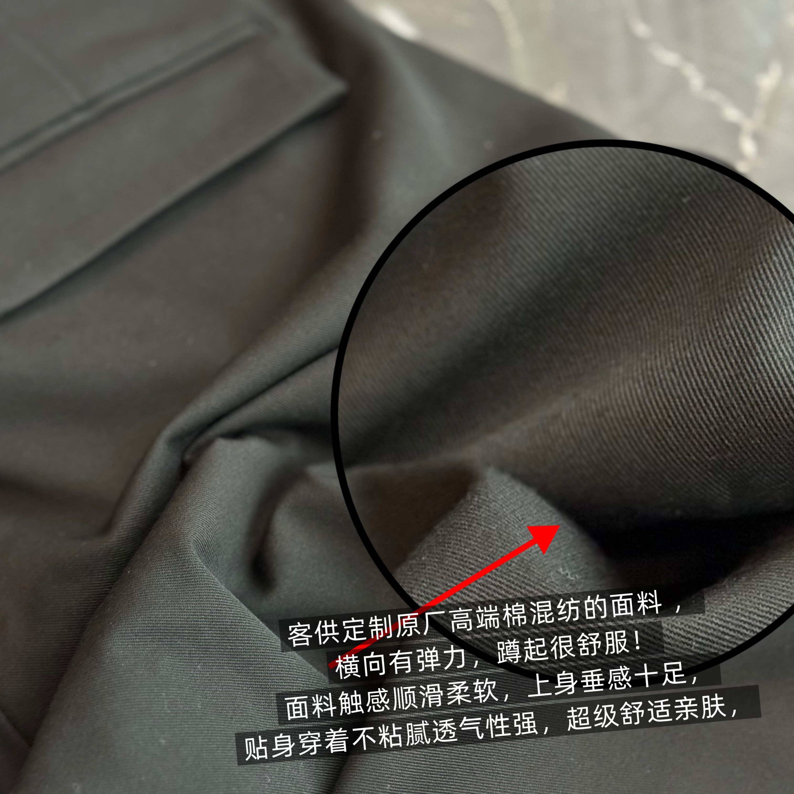 面料入手细腻,水洗不起球,哑光色泽,垂感质感俱佳!紧实缜密的面料具备非常好的防风性和回塑韧性,不易起褶皱!日常商务或者通勤必备单品!