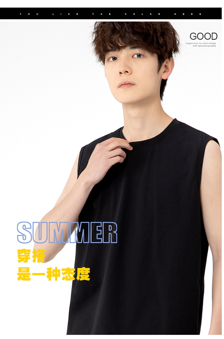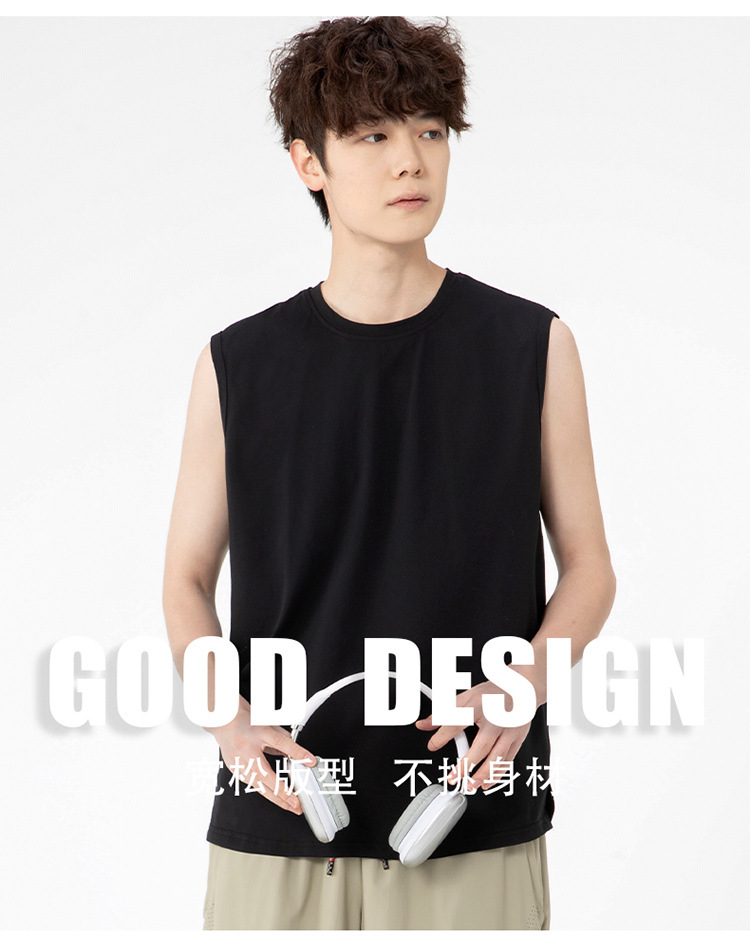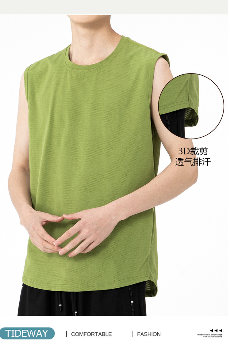 【DSK】大依优型大码速干背心索罗娜凉感科技运动健身速干无袖t恤宽松砍袖上衣男士