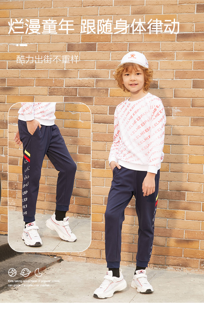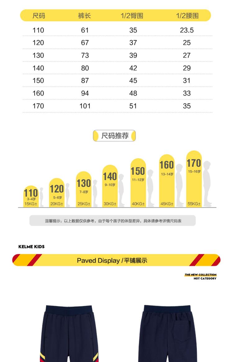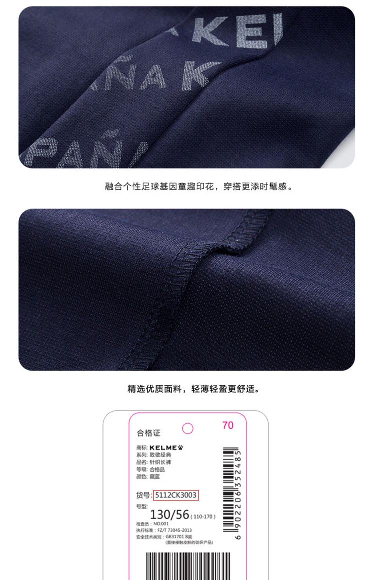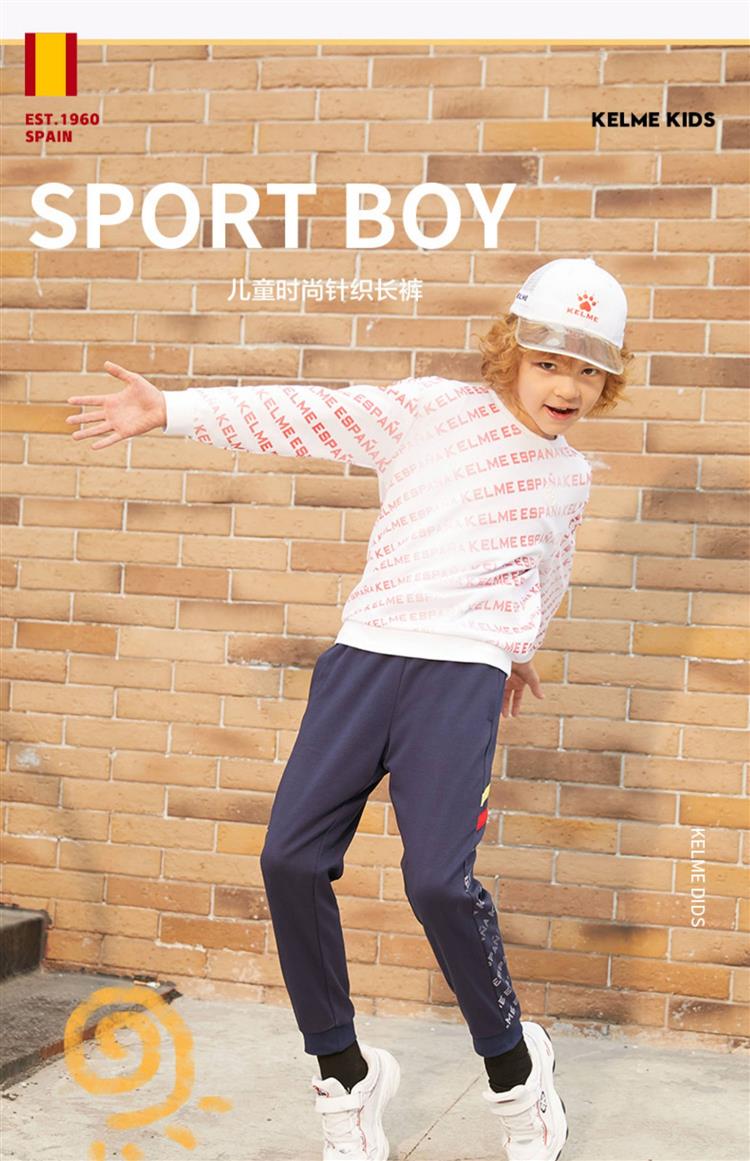 KELME卡尔美 男童运动长裤春秋薄款儿童足球针织长裤休闲运动裤潮