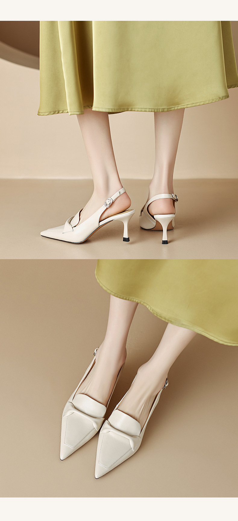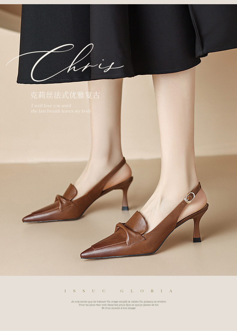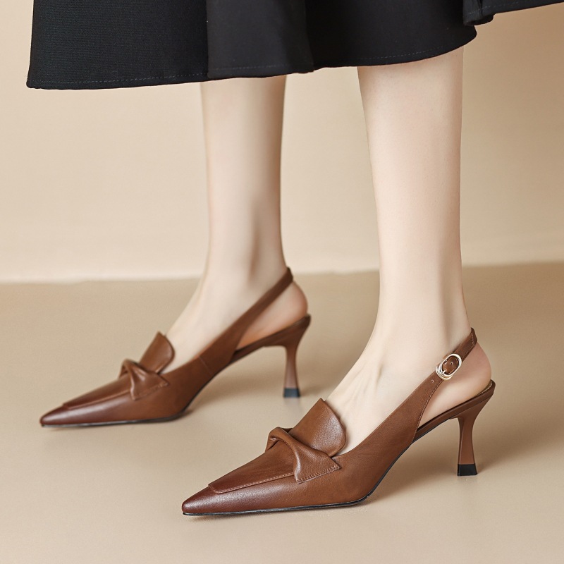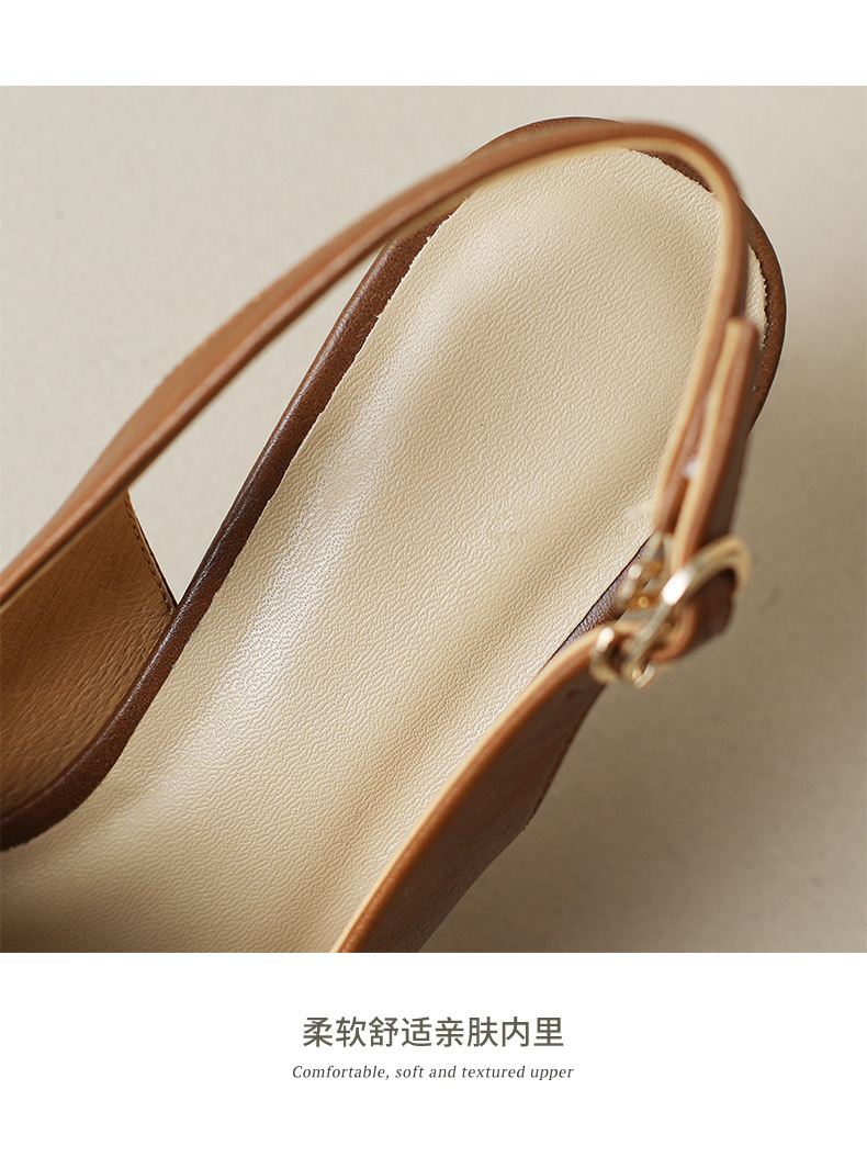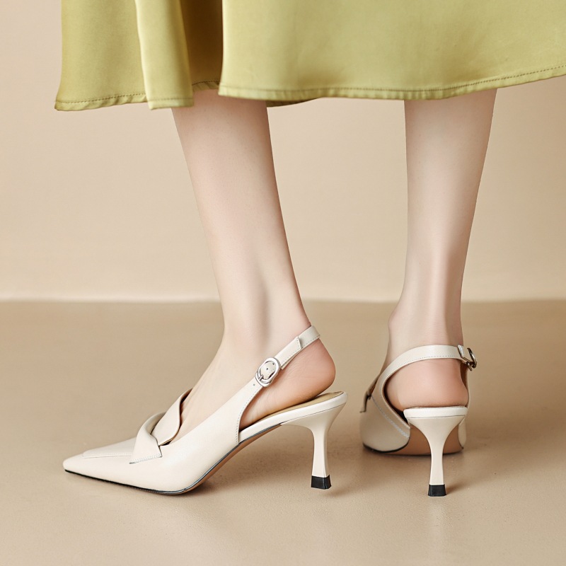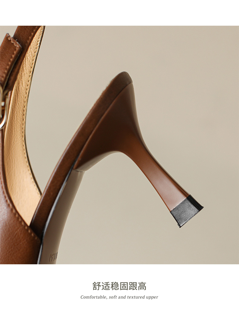 牛皮尖头显瘦配裙子高跟鞋,一字扣带细跟包头后空凉鞋DB-M5579