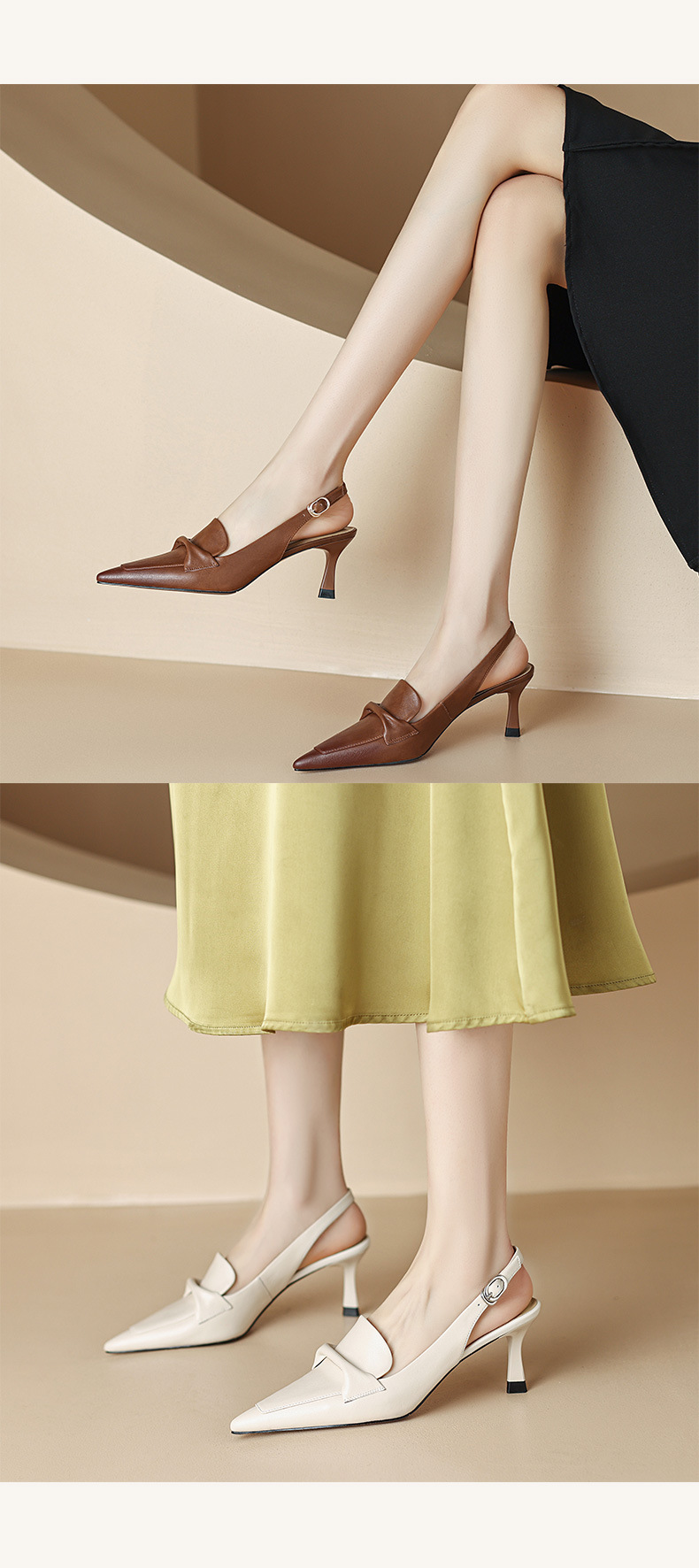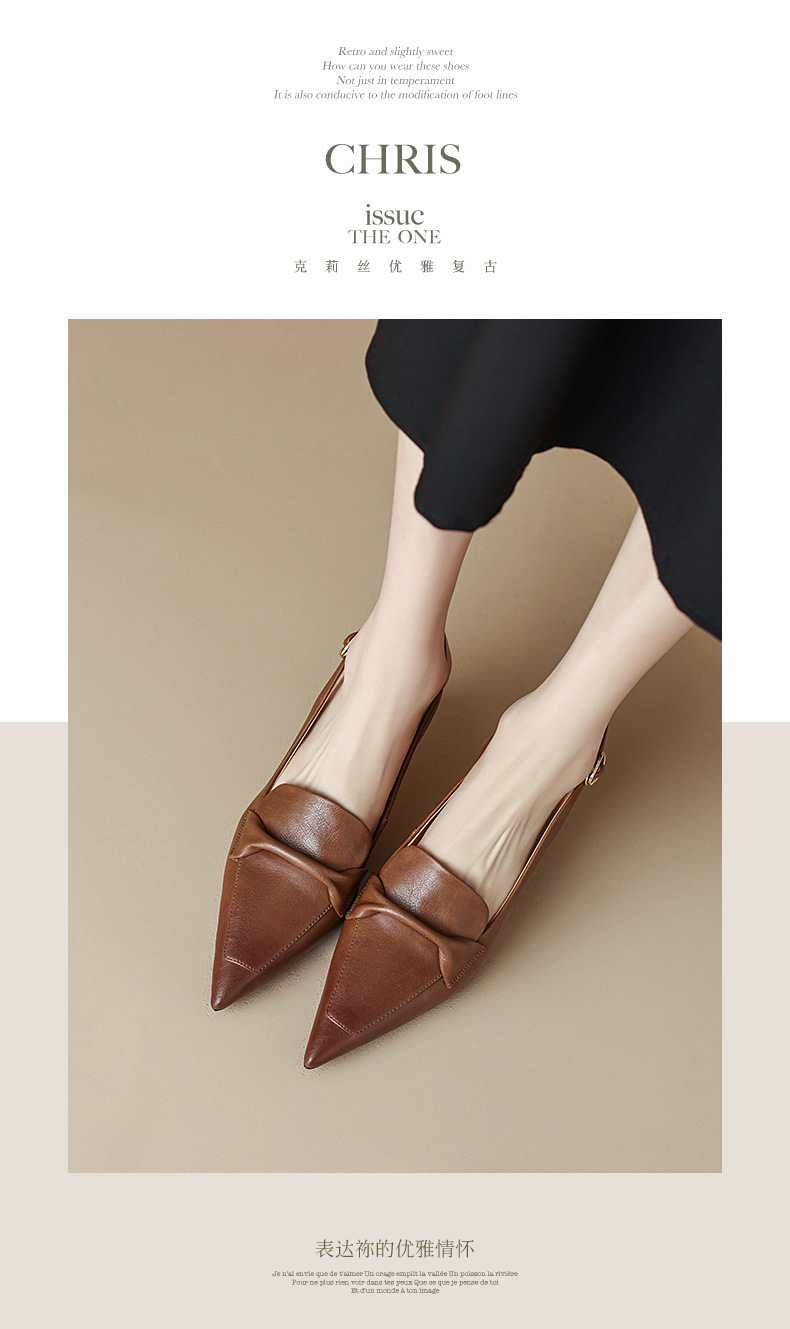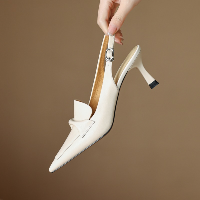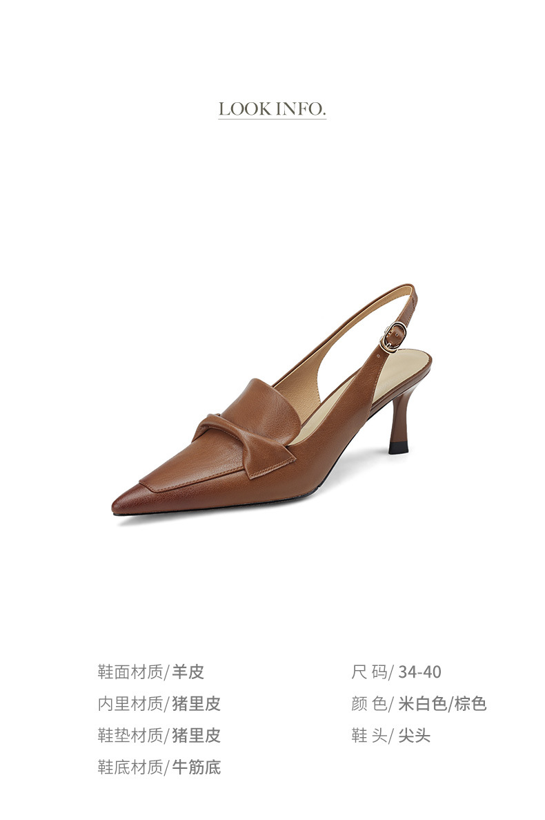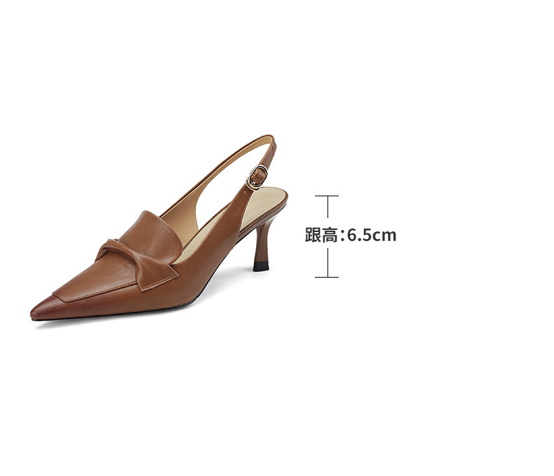 牛皮尖头显瘦配裙子高跟鞋,一字扣带细跟包头后空凉鞋DB-M5579