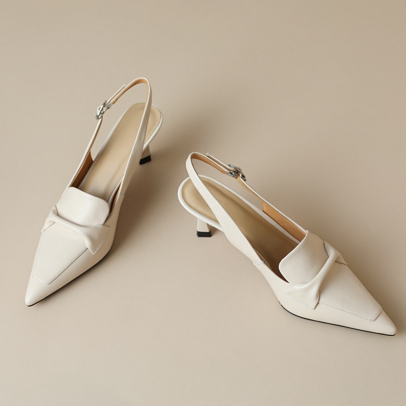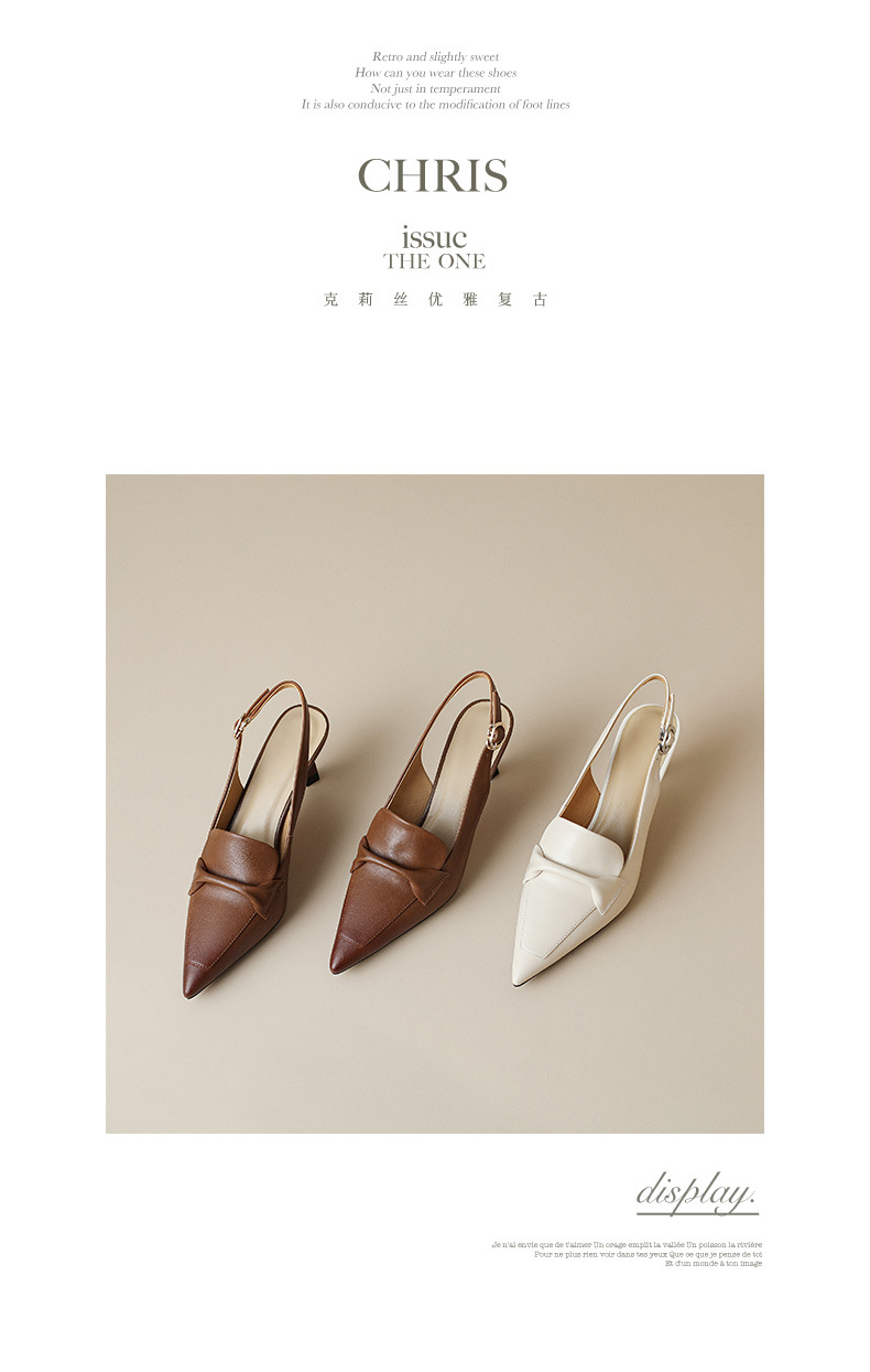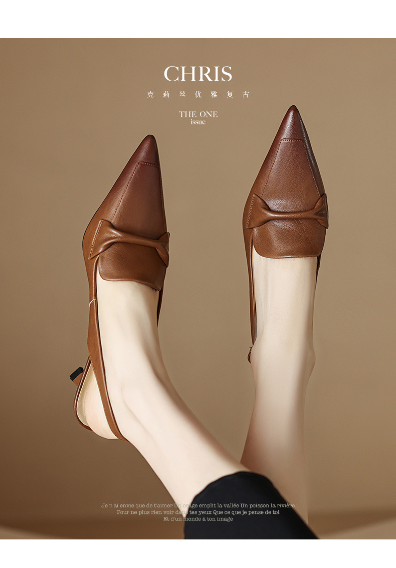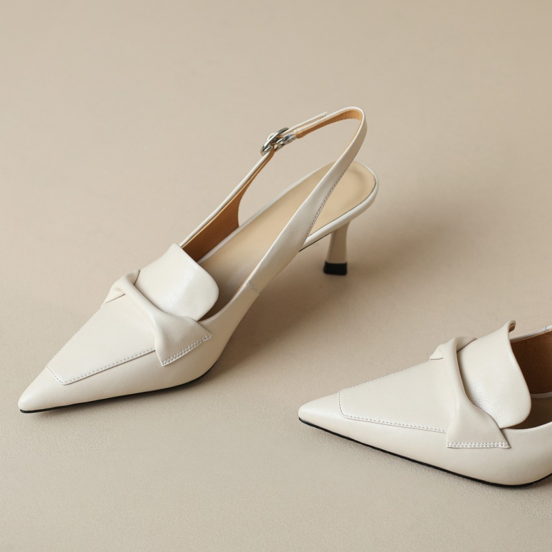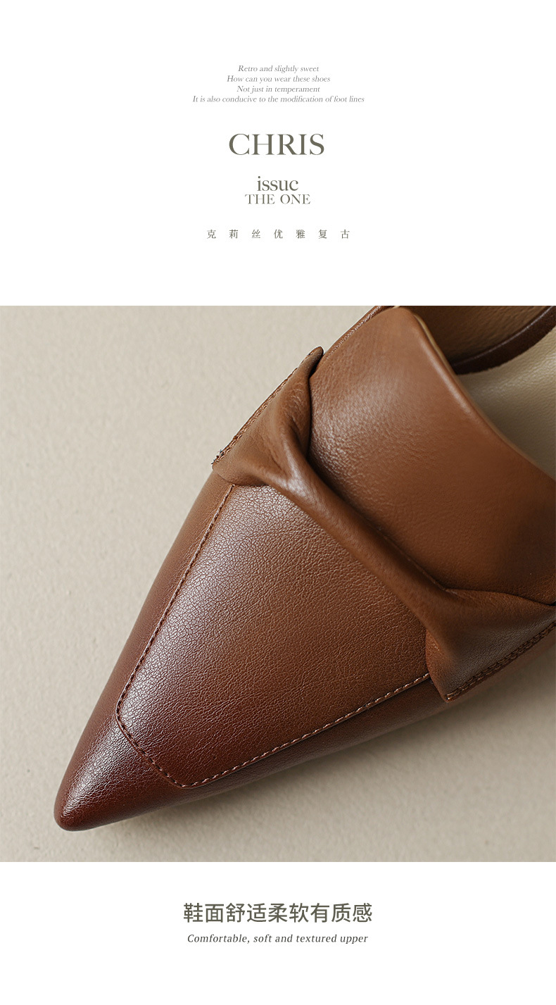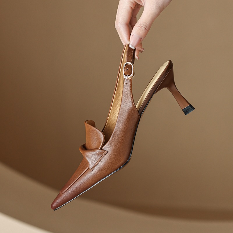 牛皮尖头显瘦配裙子高跟鞋,一字扣带细跟包头后空凉鞋DB-M5579