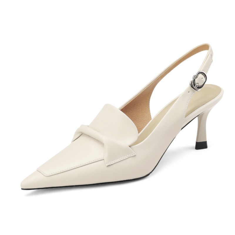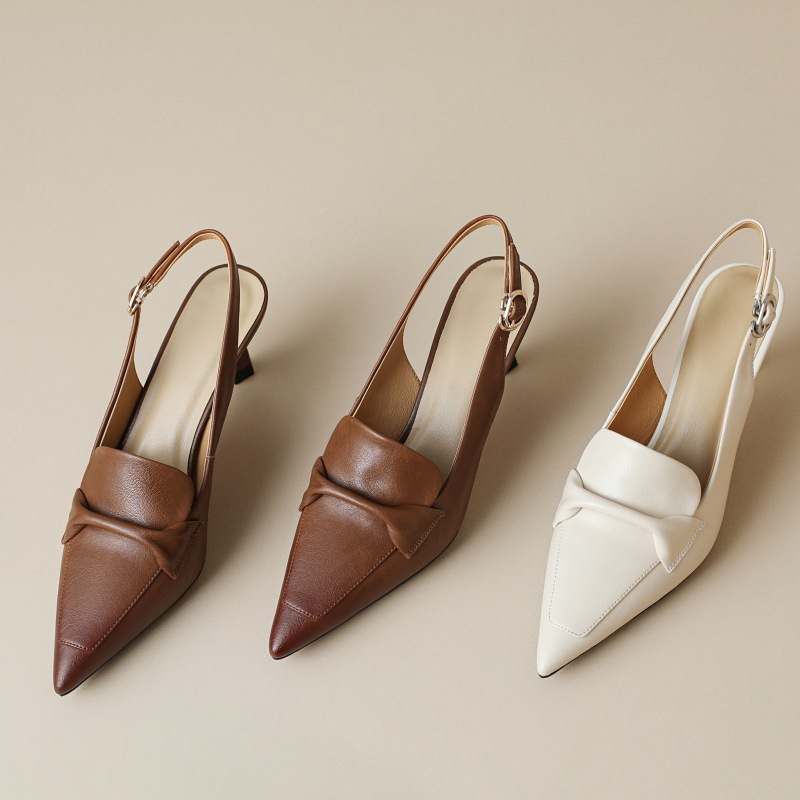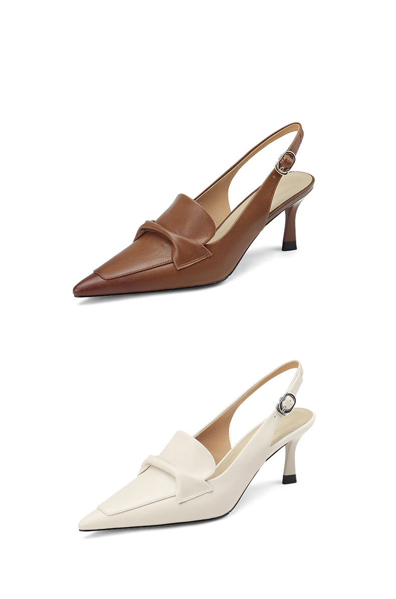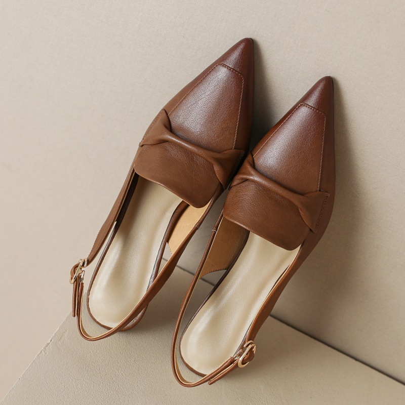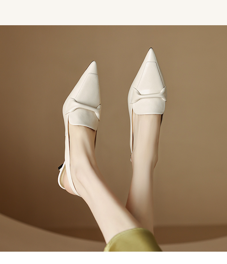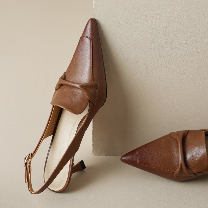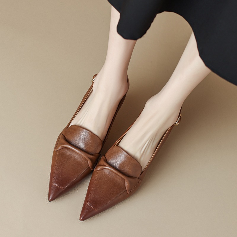 牛皮尖头显瘦配裙子高跟鞋,一字扣带细跟包头后空凉鞋DB-M5579