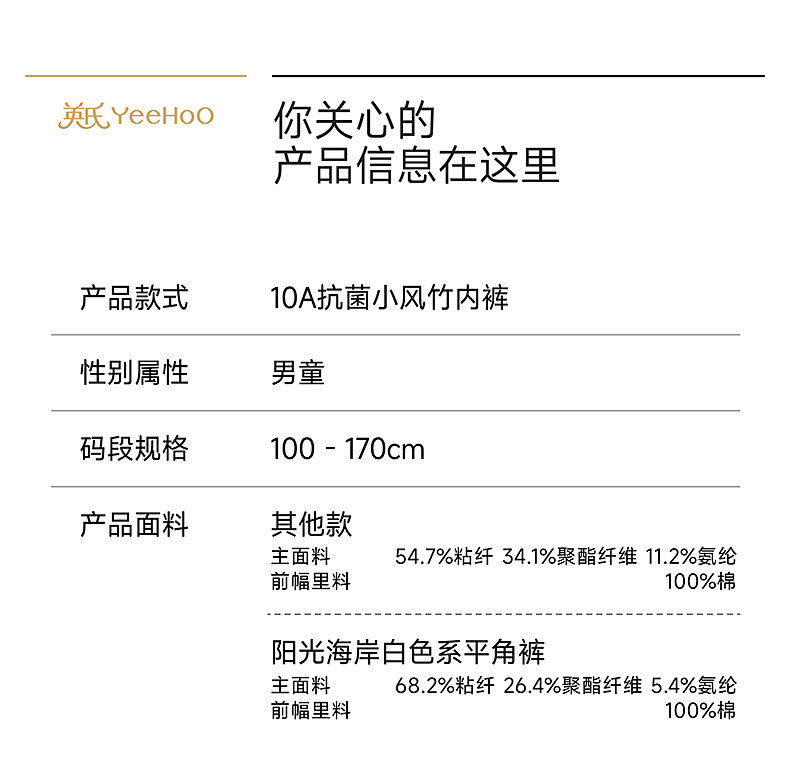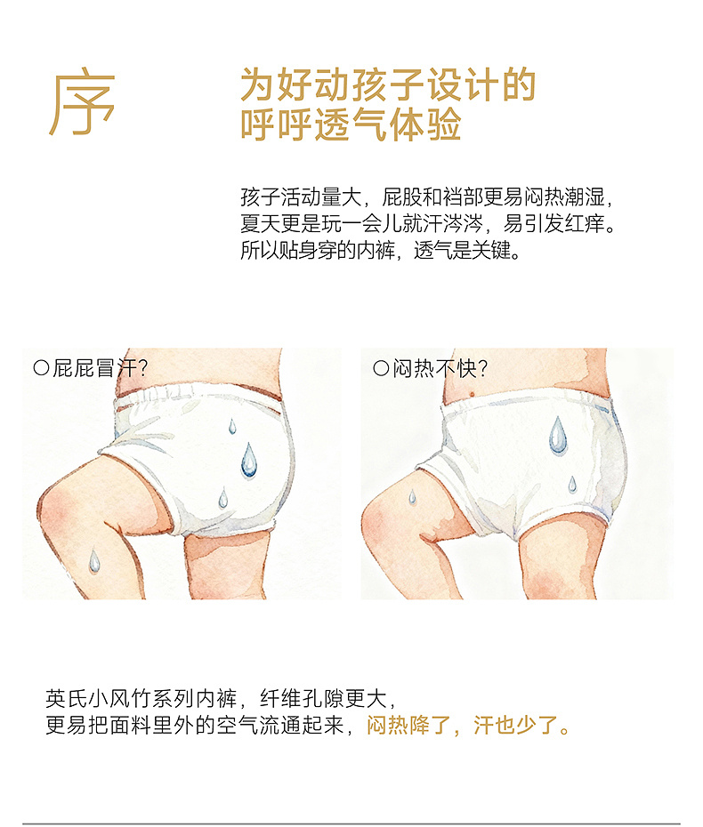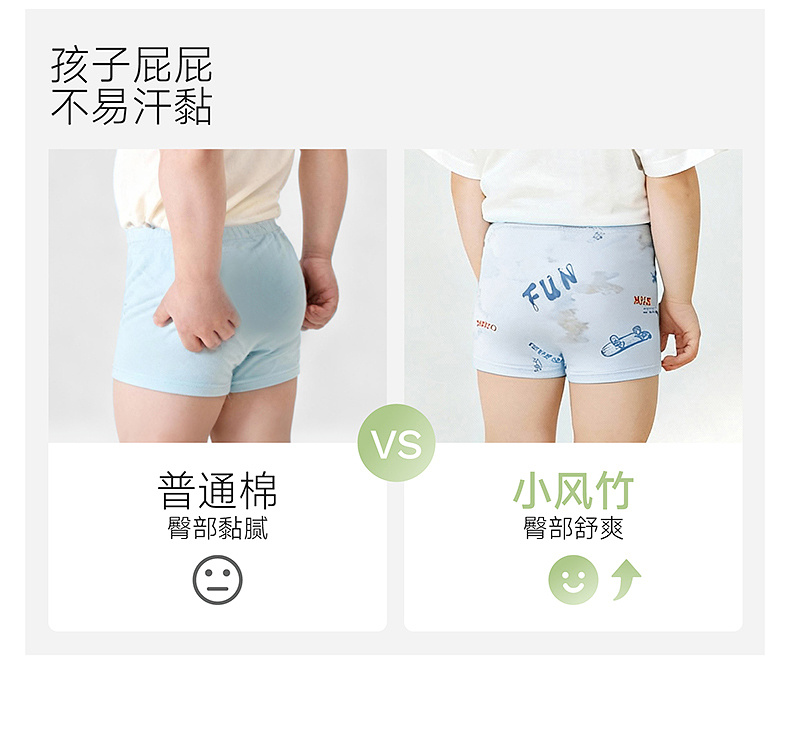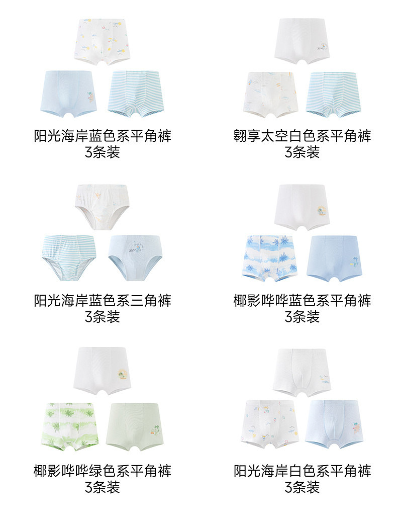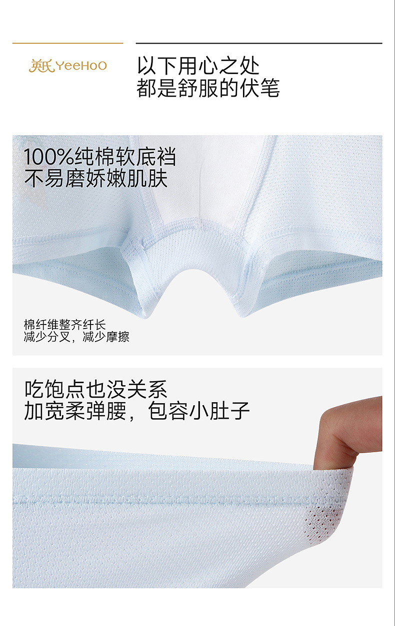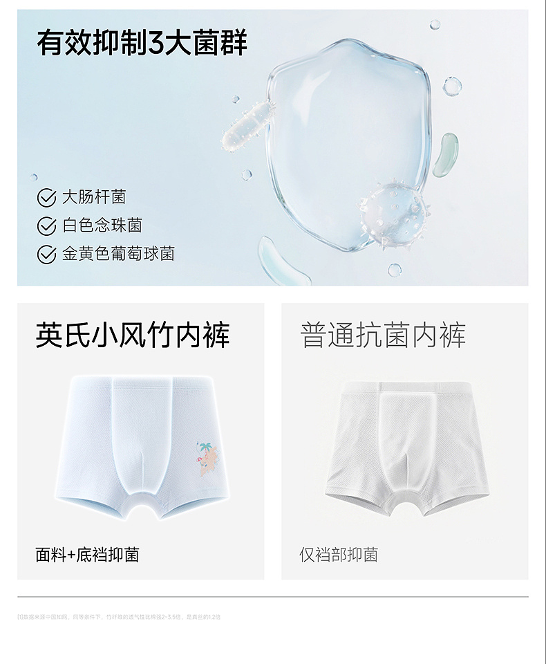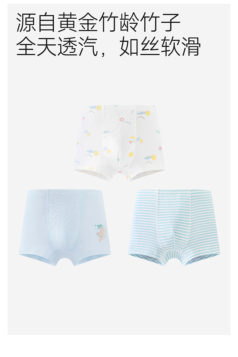 【10A抗菌+吸湿速干】英氏儿童内裤男童平角内裤三角内裤四季款四角裤中大童3件装
