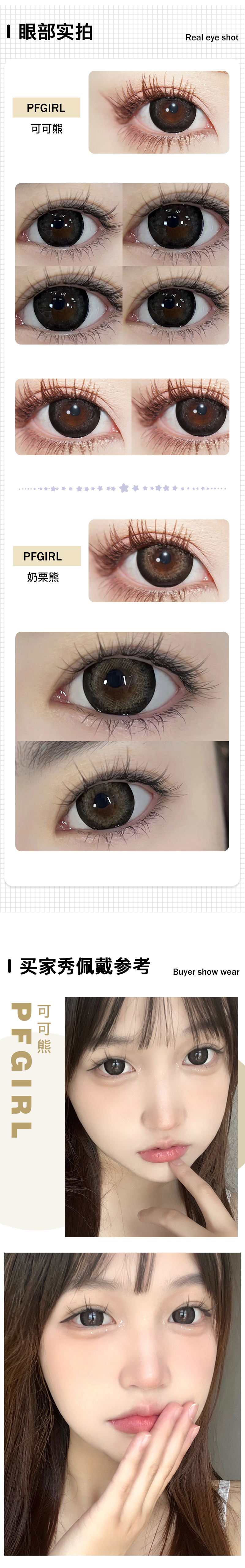 PFGIRL / 奶栗熊/可可熊 / 年抛美瞳 / 2片入 / 14.5mm / 明显扩瞳粗边提神素颜款