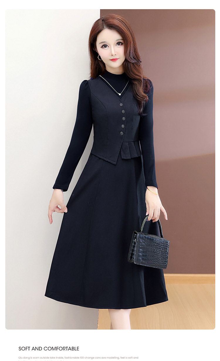 QYM 54C2512-Y时尚修身显瘦中长款马甲假两件连衣裙 商品图1