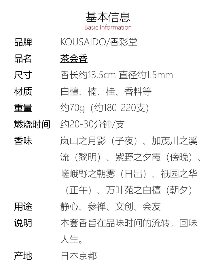 【KOUSAIDO】香彩堂茶会香系列氛围香 70g
