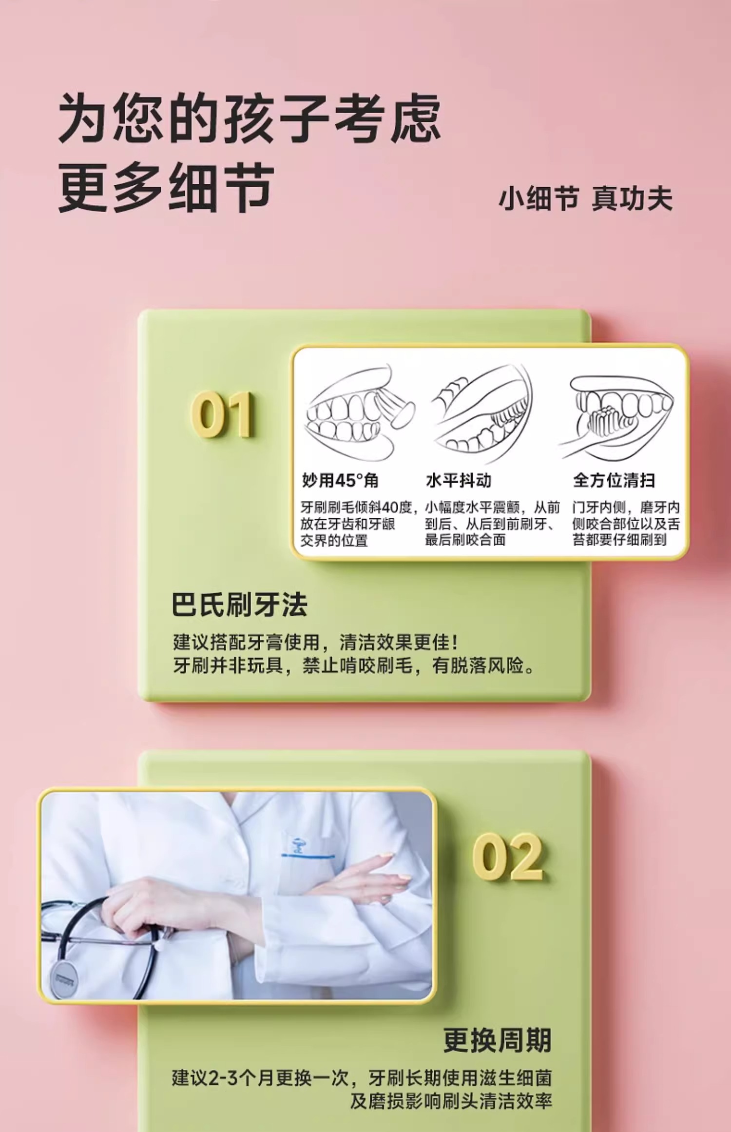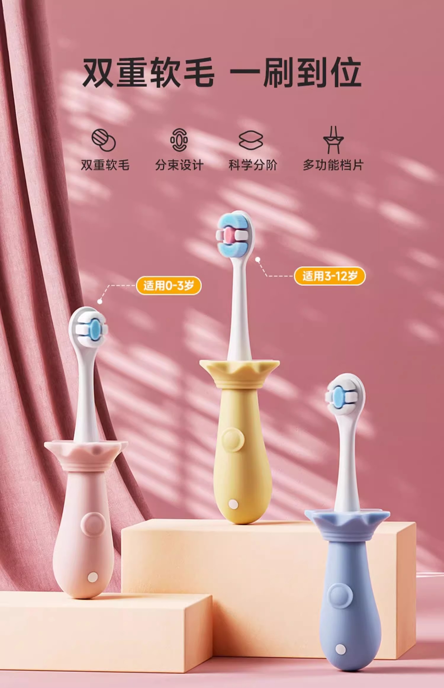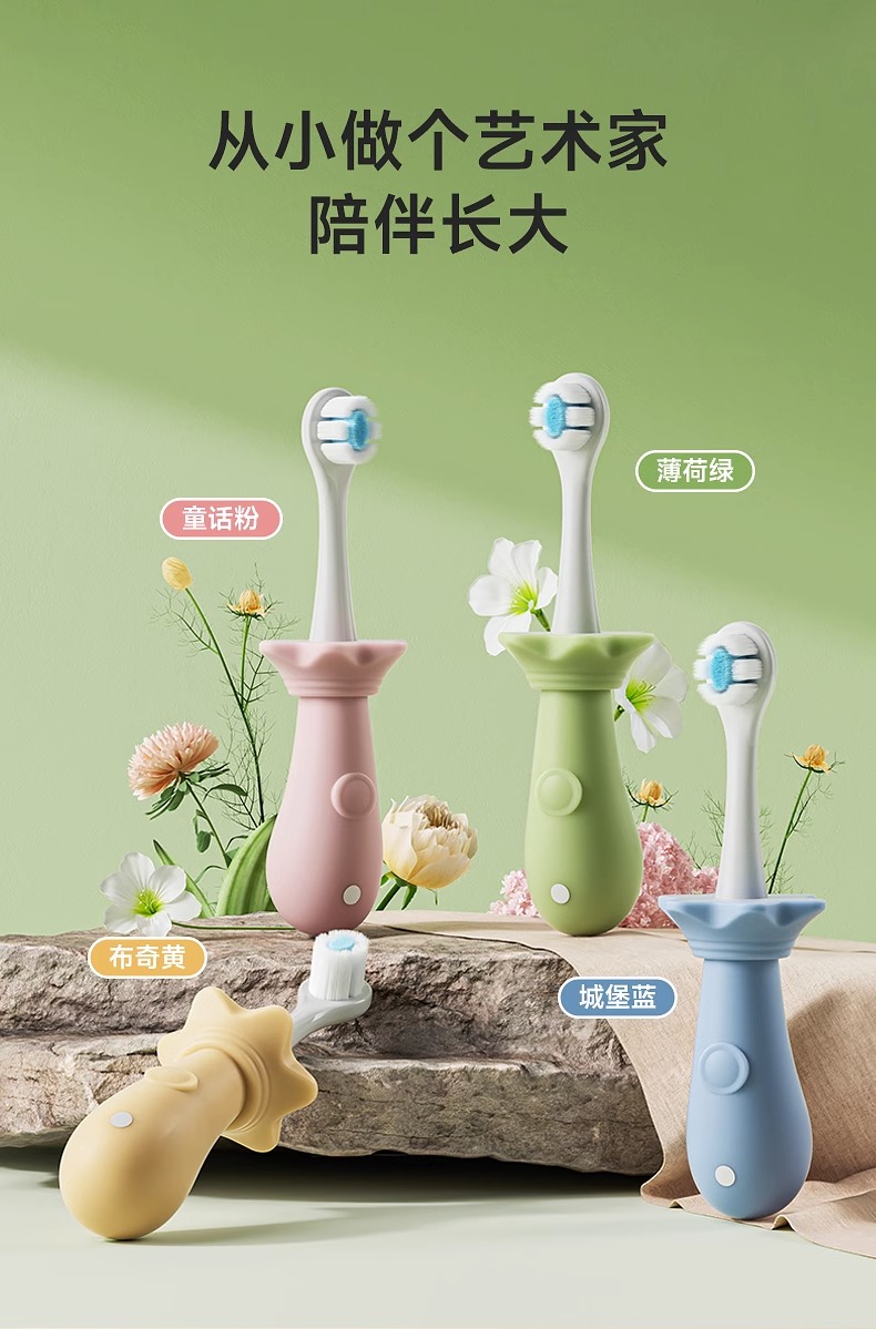 【轻柔洁齿!呵护小萌牙】呵护口腔,儿童牙刷轻轻擦,适用于0-1-2-3到6岁,婴幼儿牙齿健康成长。有效清洁口腔,呵护宝宝的牙齿健康!