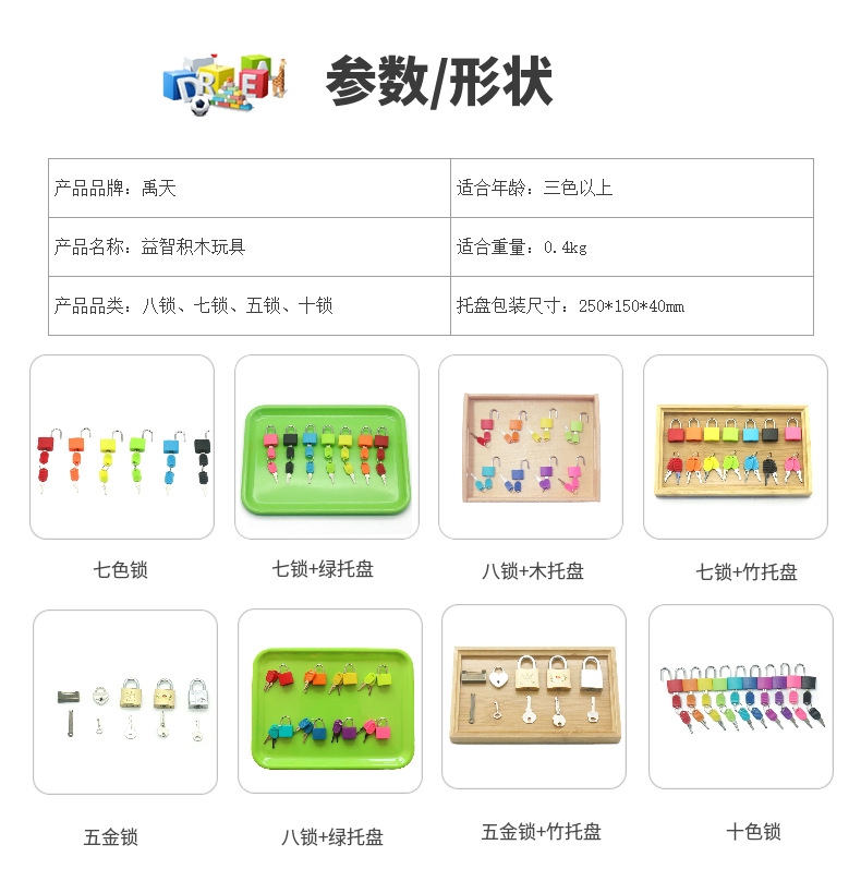 【蒙氏彩色小锁,颜色多样,亲子互动!】蒙台梭利教具 锻炼动手能力 快乐成长 颜色认知 日常生活学习教具 幼儿园智力开发玩具 迷你锁套组-QB