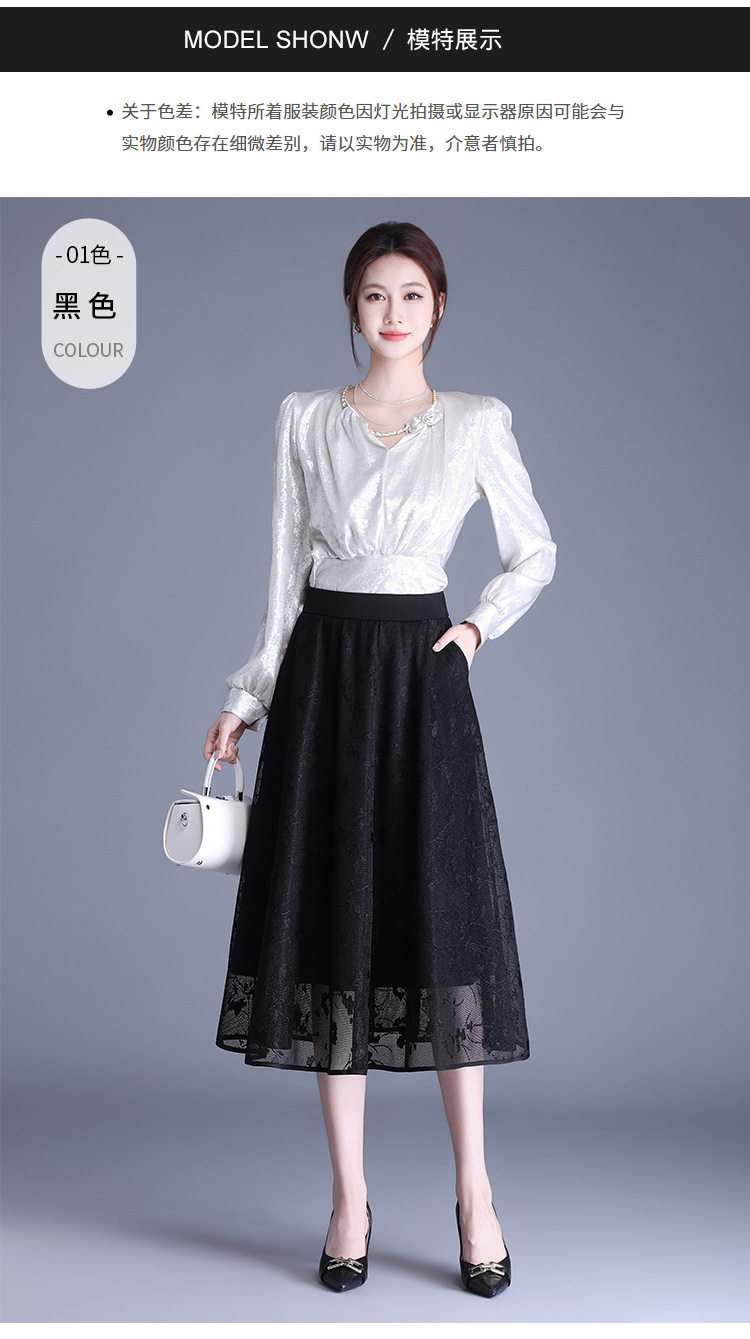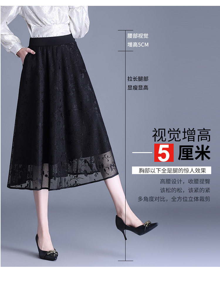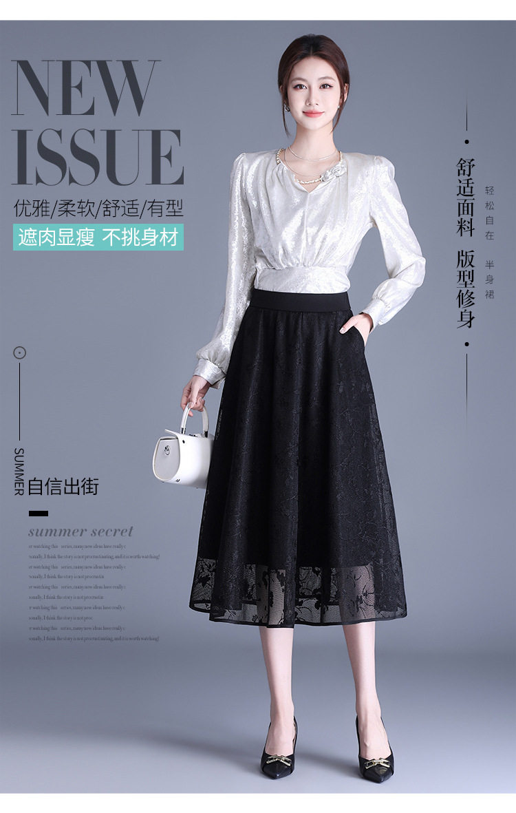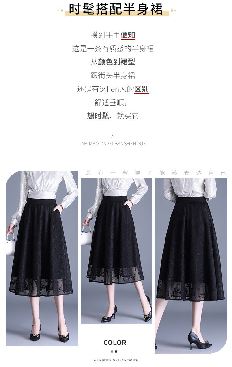 「自」全新升级【铂金会员146/天猫189/差价43】(05202)洛诗琳气质网纱半身裙2026春夏新款高腰遮胯显瘦中长款蕾丝A字裙