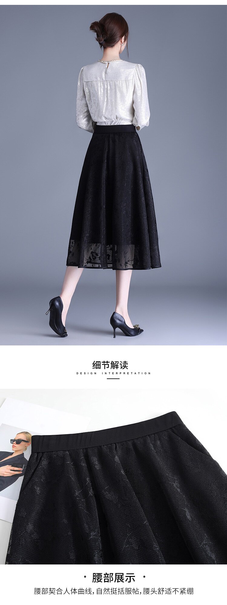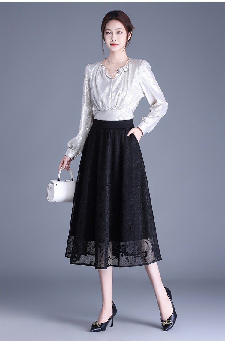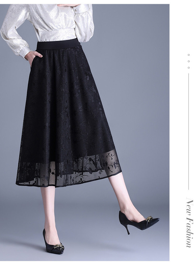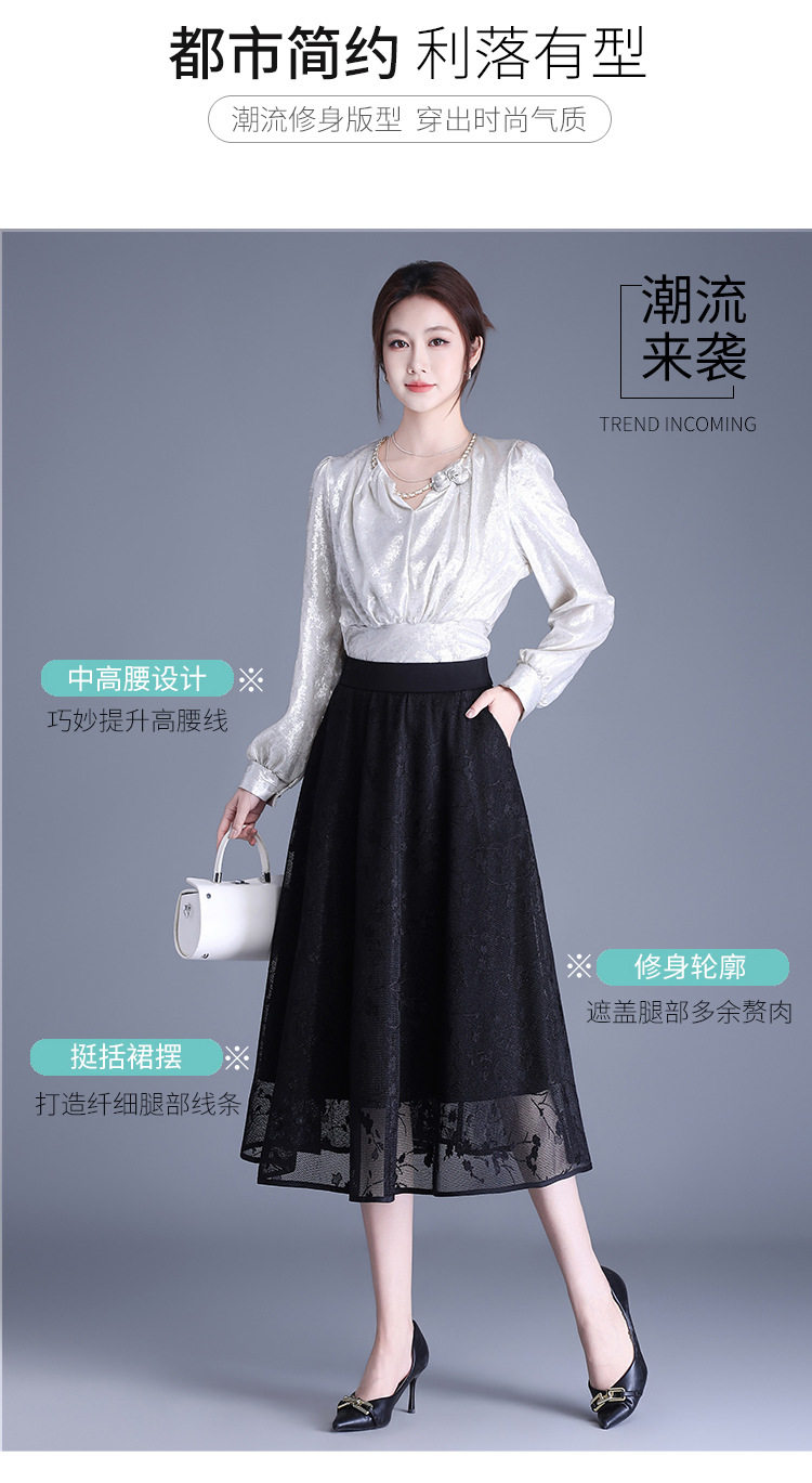 「自」全新升级【铂金会员146/天猫189/差价43】(05202)洛诗琳气质网纱半身裙2026春夏新款高腰遮胯显瘦中长款蕾丝A字裙