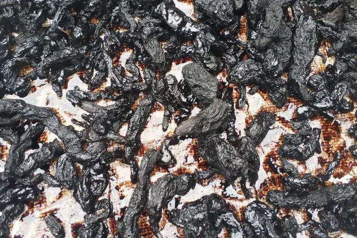 炮制后的熟地乌黑油亮,入口药香浓郁,微微苦涩。我们采用铝箔包装,包装标签按食品相关规定标示了2年,实际上,冷藏或阴凉干燥处可长期保存。