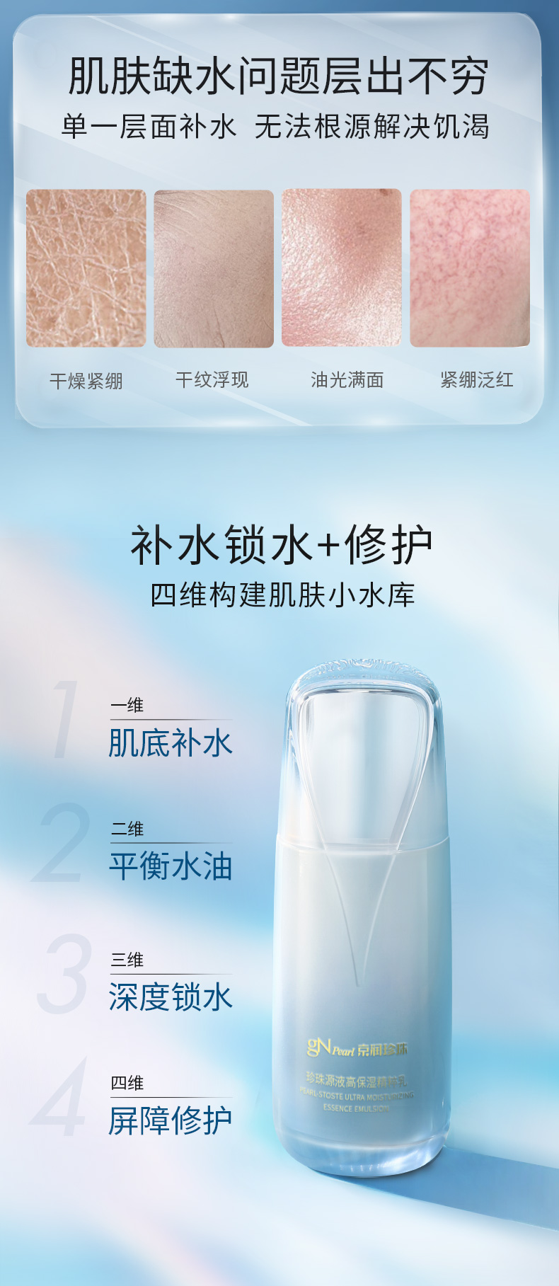 京润珍珠源液高保湿精粹乳锁水补水修护去油水油平衡