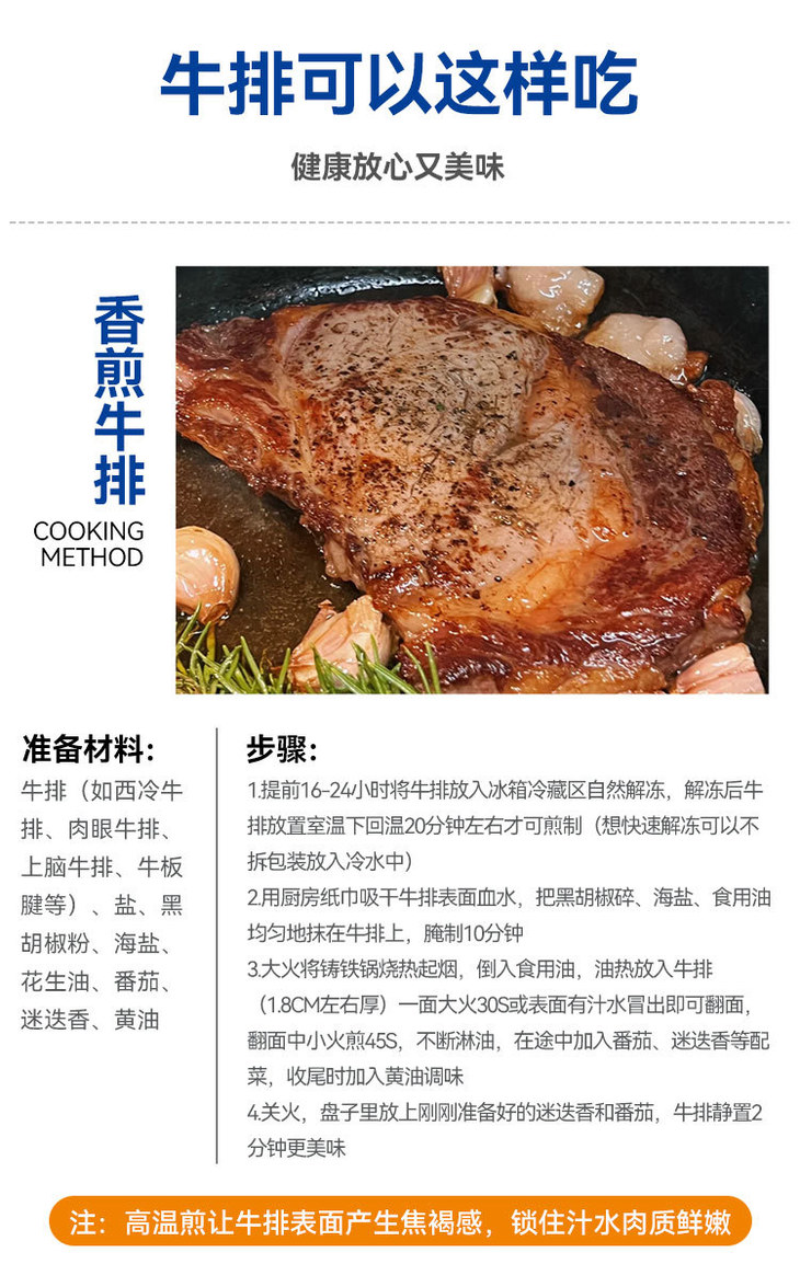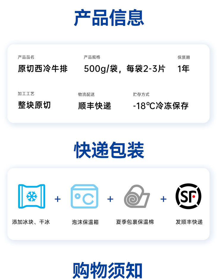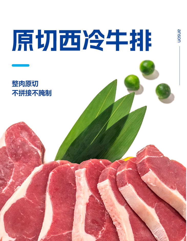 #顺丰包邮#【安森海鲜】巴西原切西冷牛排 500g*2袋装(非礼盒)原味0添加不腌制原切牛扒厚切健身轻食牛肉整条牛外脊