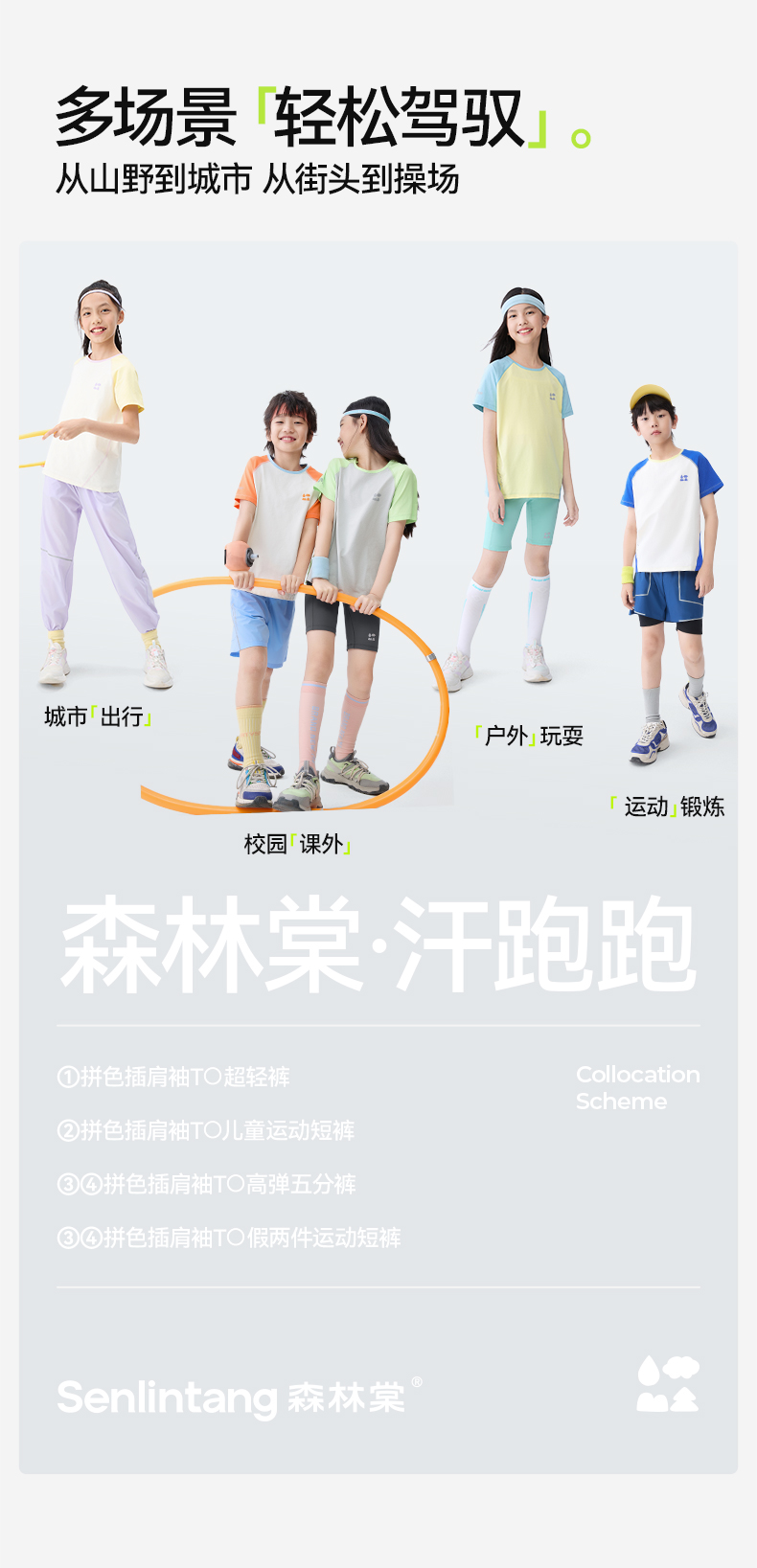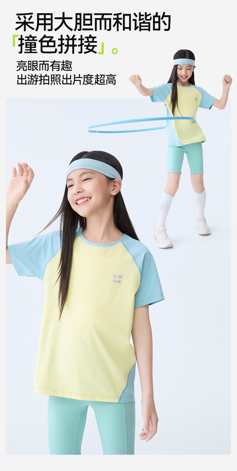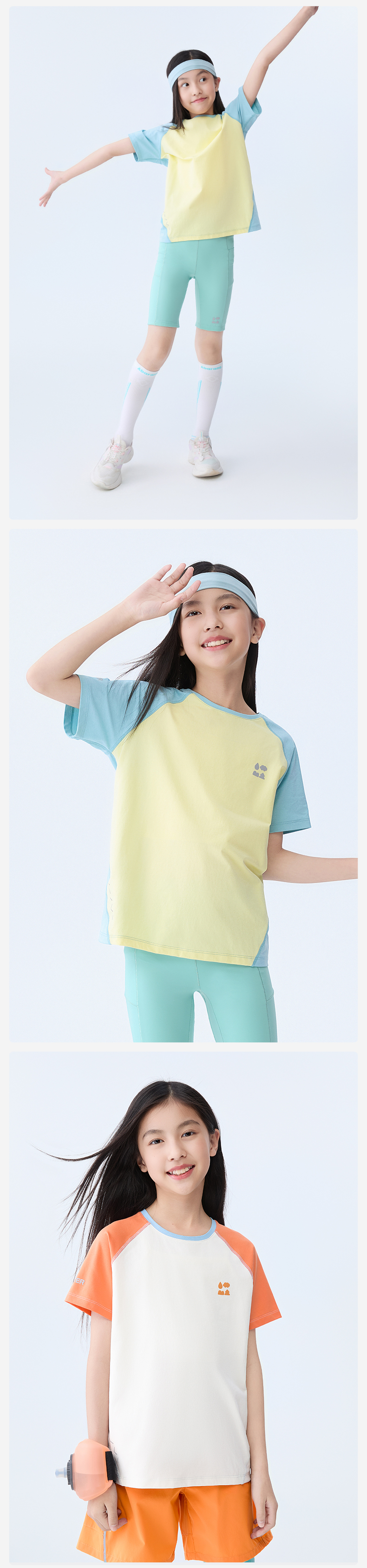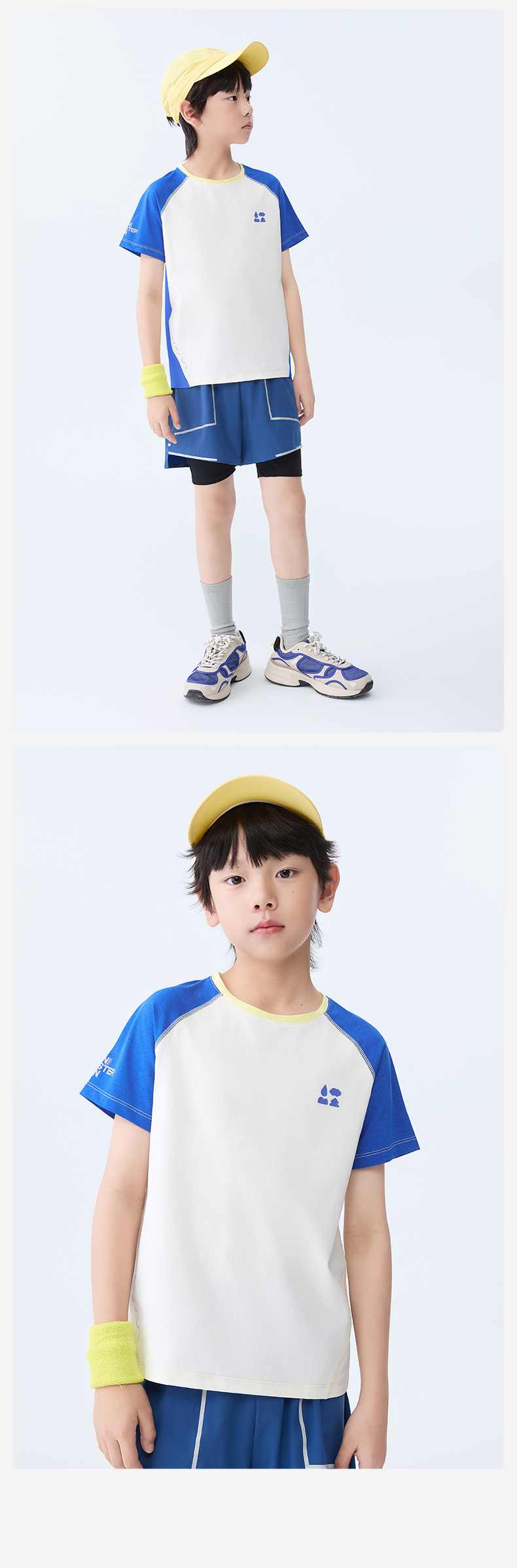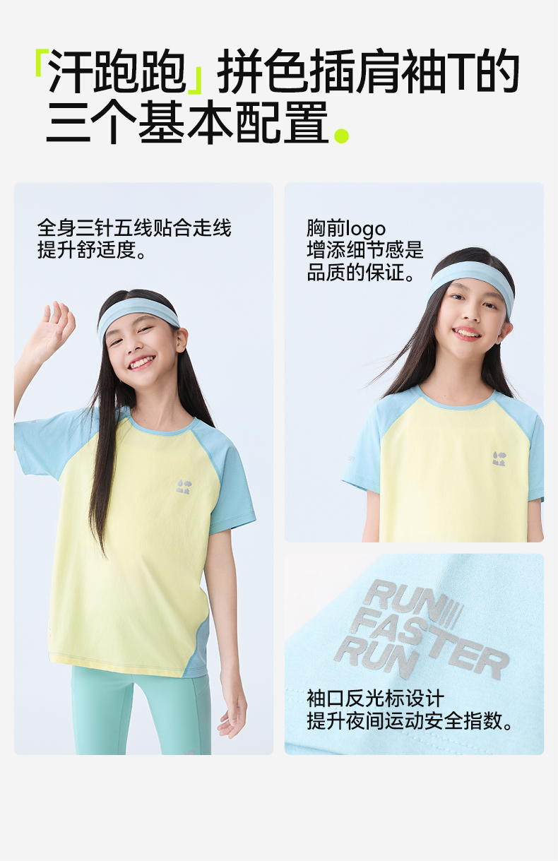 【汗跑跑插肩短袖速干衣】森林棠25夏款儿童吸湿速干撞色拼接运动短袖T恤40322523