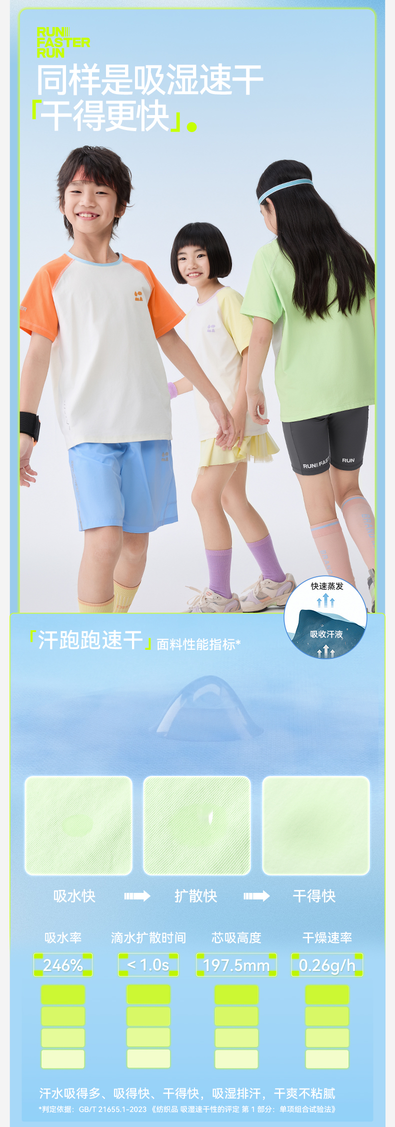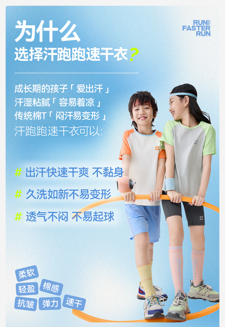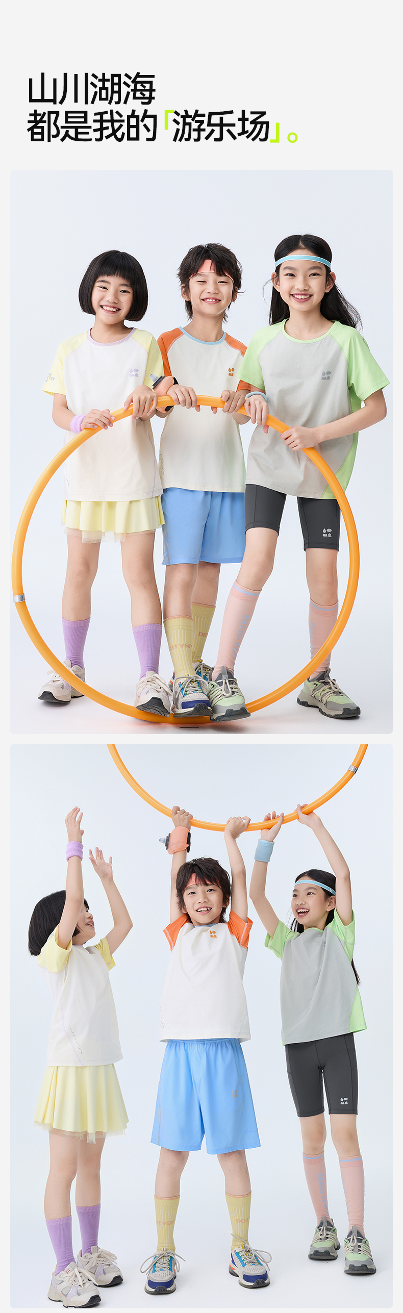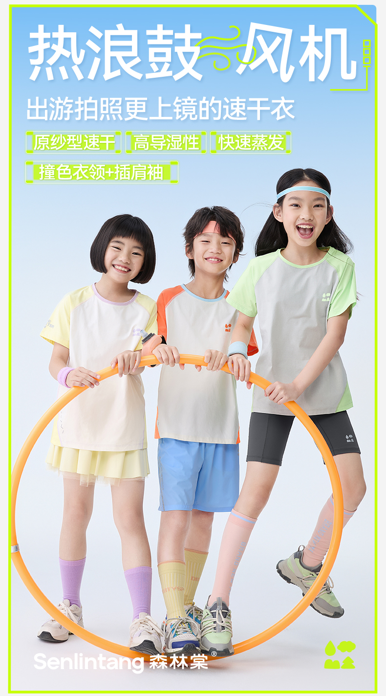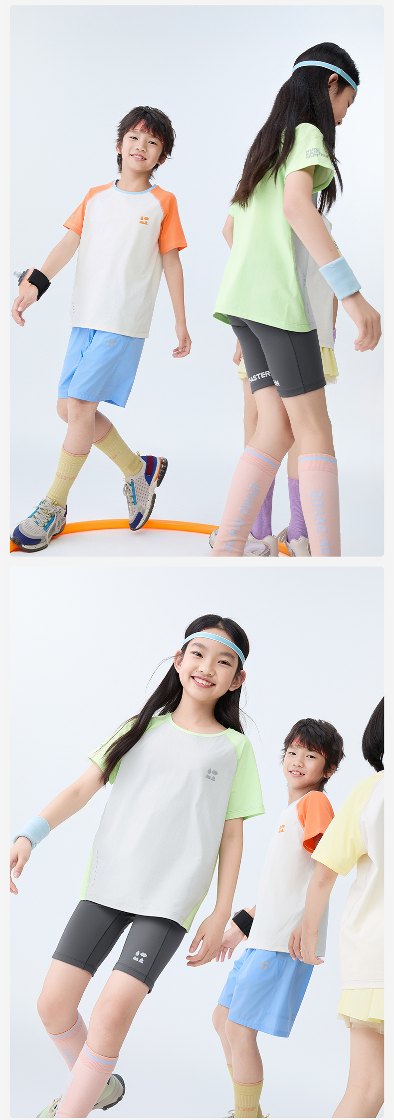 【汗跑跑插肩短袖速干衣】森林棠25夏款儿童吸湿速干撞色拼接运动短袖T恤40322523