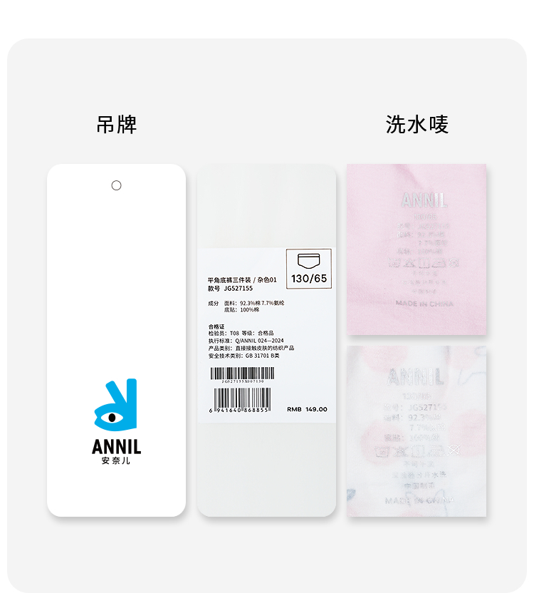 女童平角底裤三件装夏季新款安奈儿童装JG527155