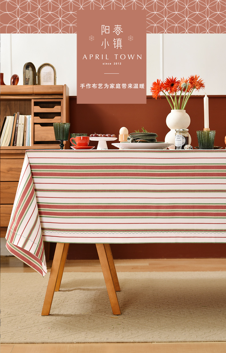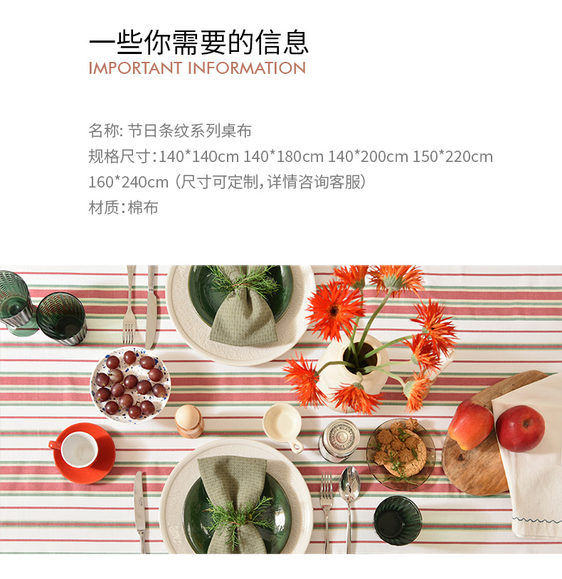 节日条纹系列桌布客厅电视柜布艺餐桌布