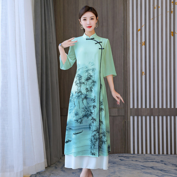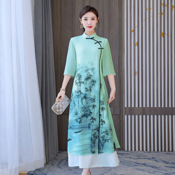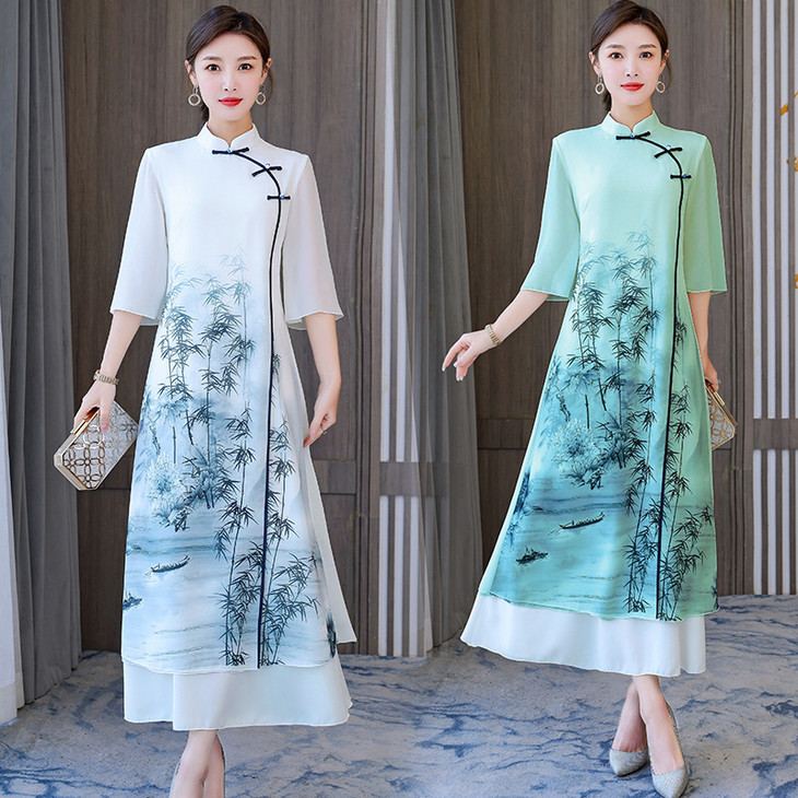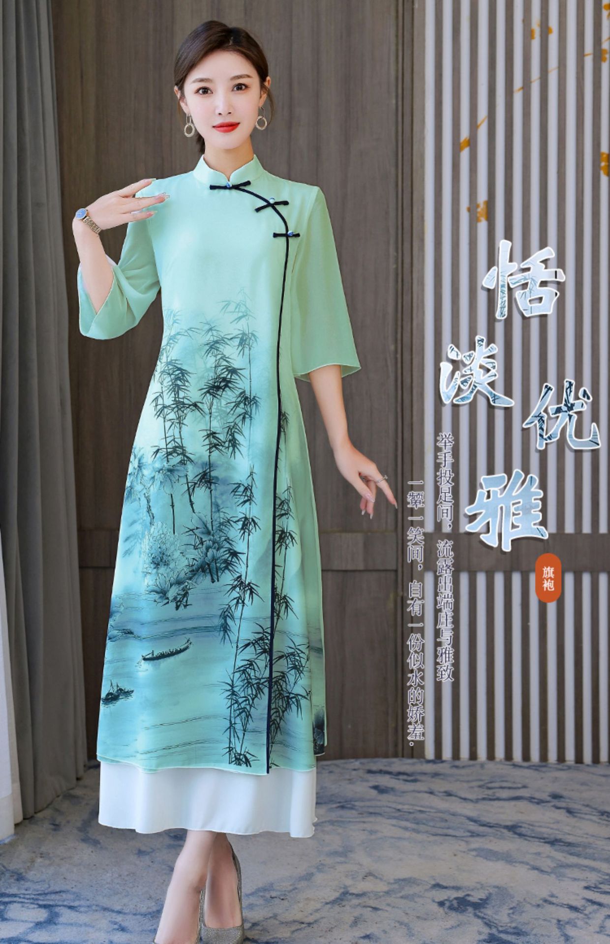 复古长款旗袍改良奥黛裙AHMhzj3022