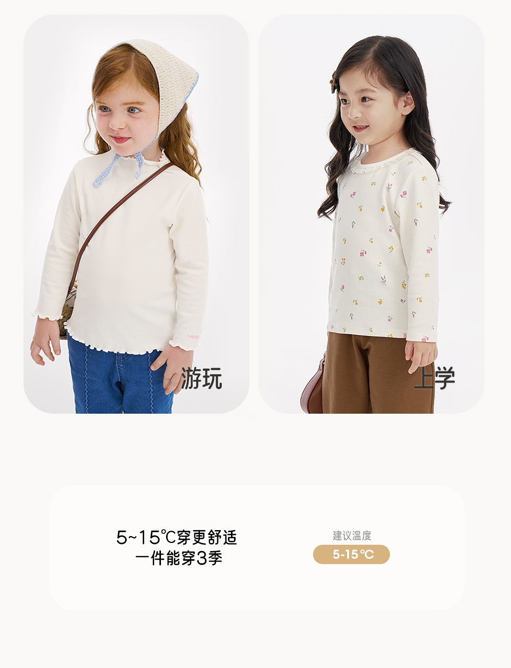 英氏儿童T恤春秋季长袖女童甜美长袖上衣百搭休闲女生碎花套头衫