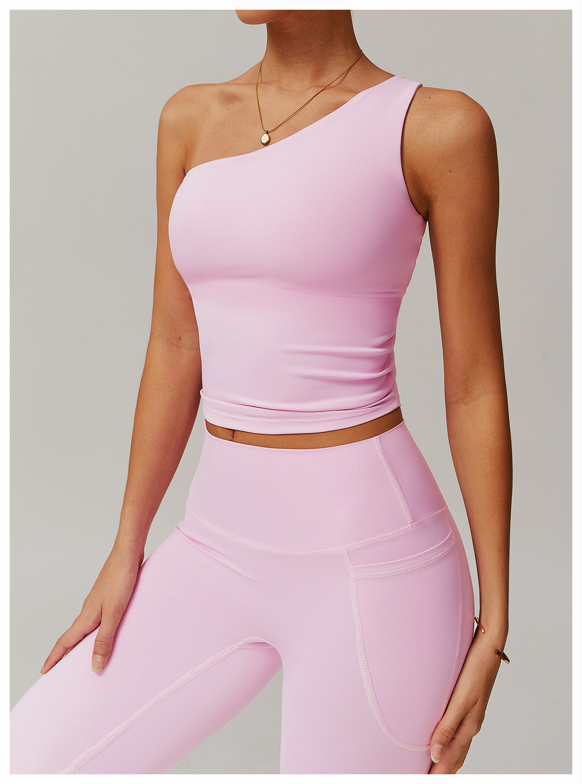 跃牌【轻匀系列】2025新款云感斜单肩收腰瑜伽背心速干运动塑形内衣跑步健身背心女WX6058