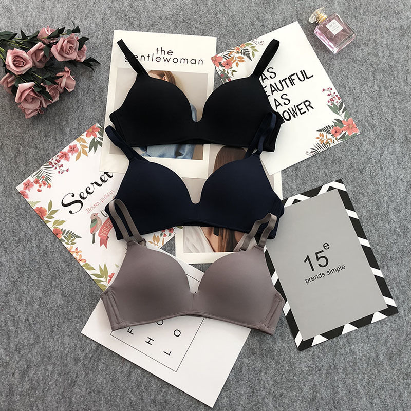黛唯梵纯色轻薄衣运动内衣女无钢圈薄款小胸聚拢胸罩无痕上托少女超薄文胸