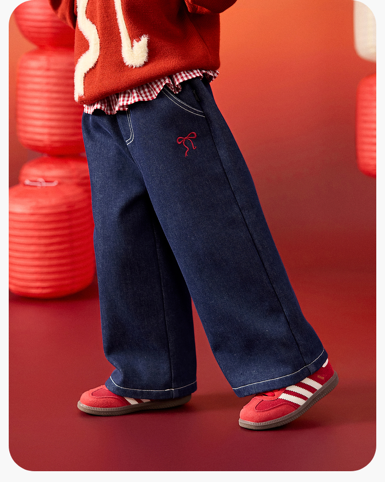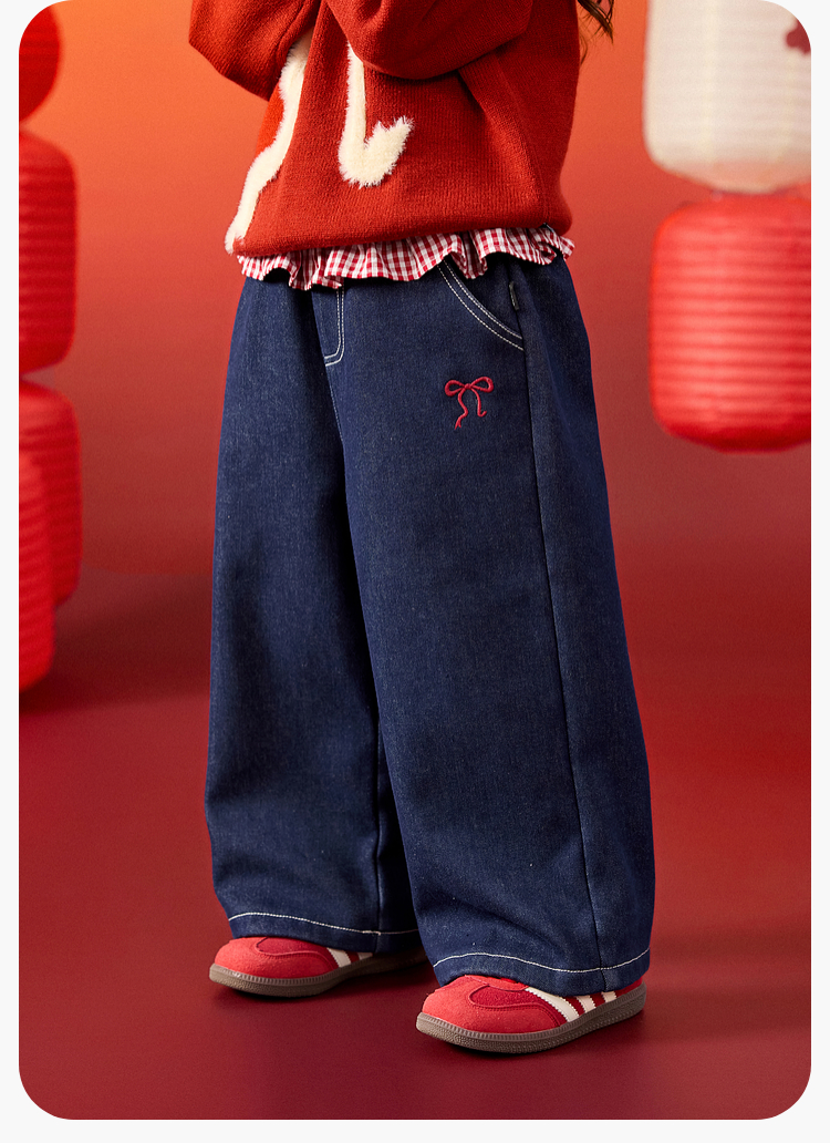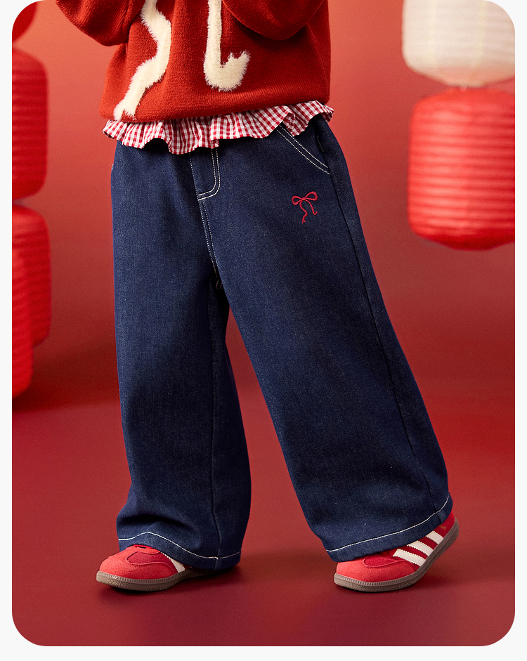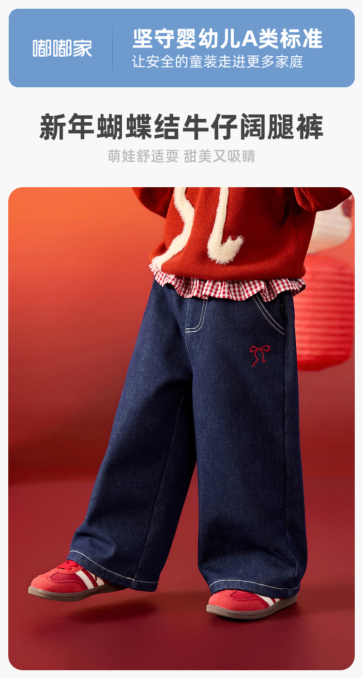嘟嘟家女童牛仔裤儿童新年加绒长裤小女孩衣服宝宝裤子童装拜年服
