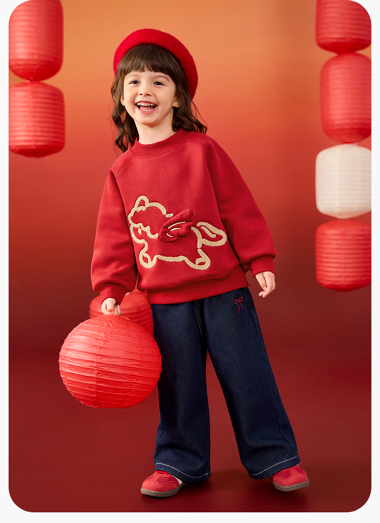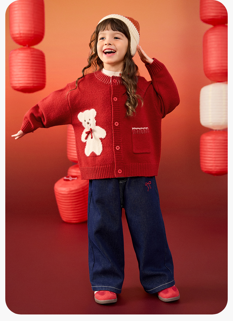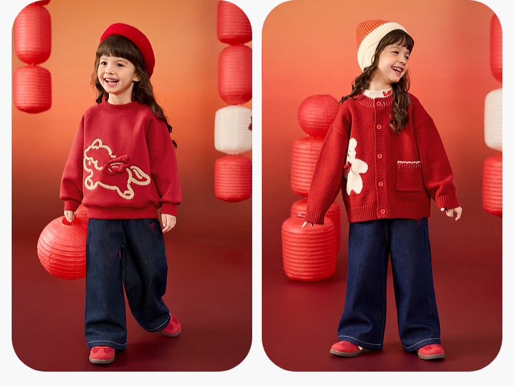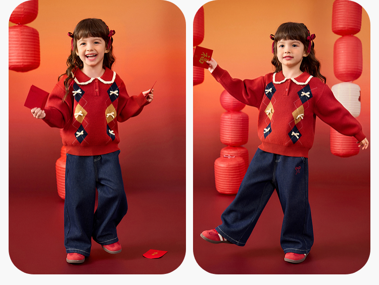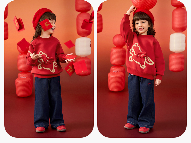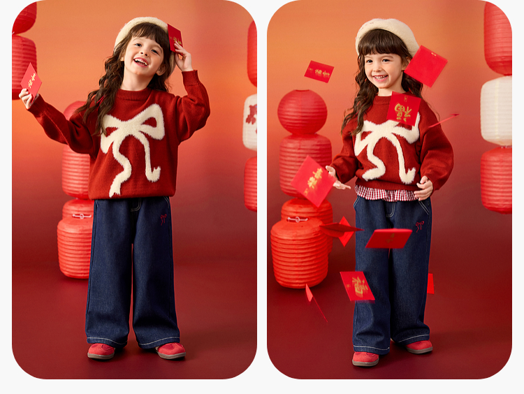 嘟嘟家女童牛仔裤儿童新年加绒长裤小女孩衣服宝宝裤子童装拜年服