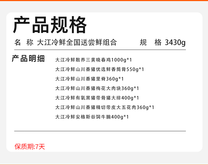 【发出后不支持拦截退货】大江 冷鲜全国送尝鲜组合 3430g