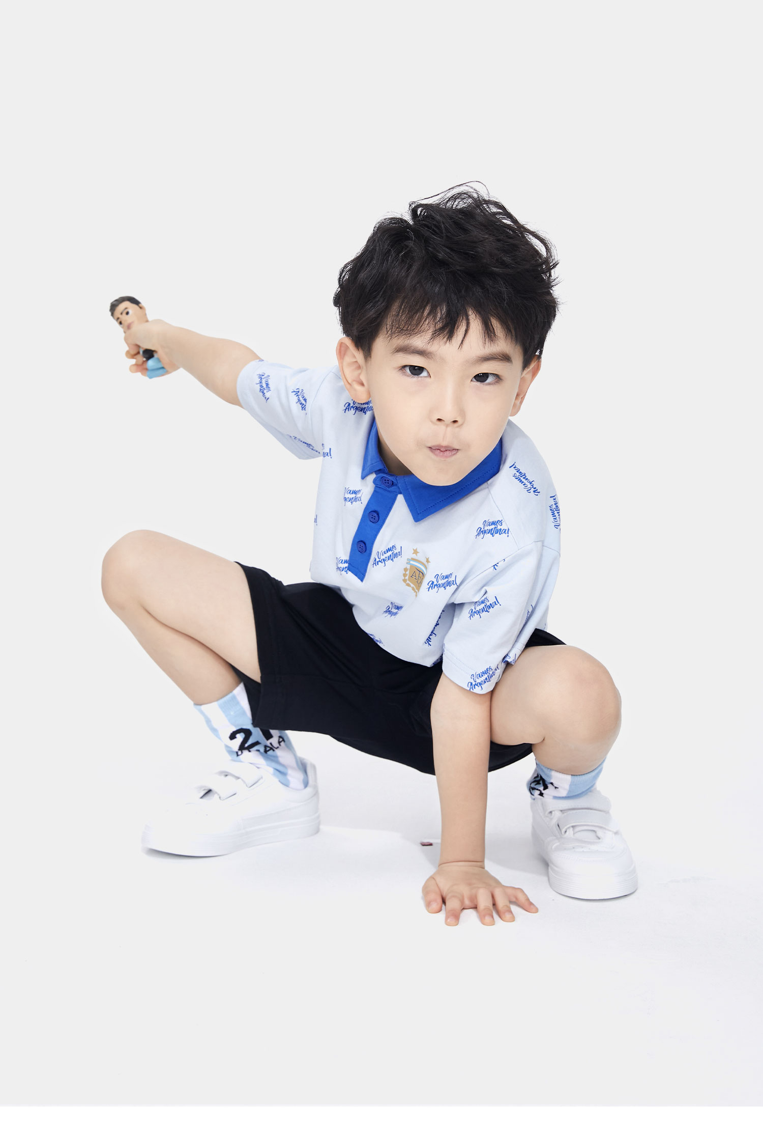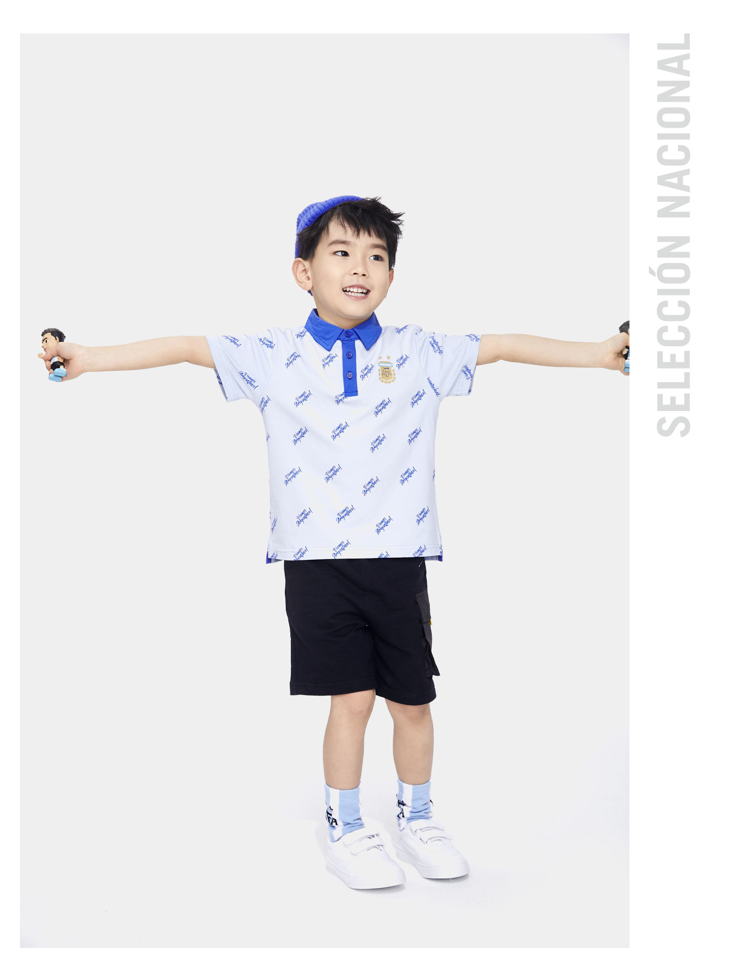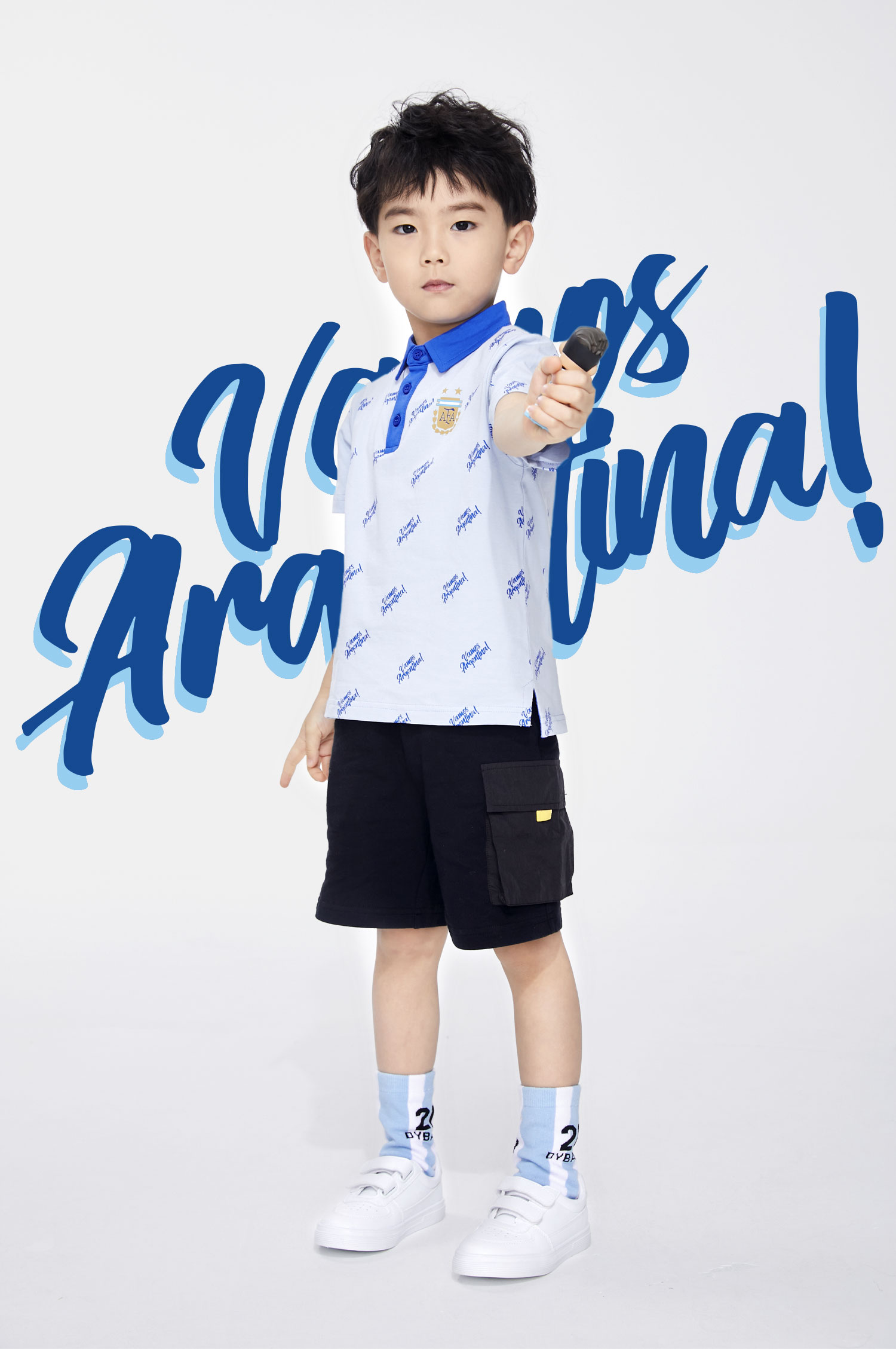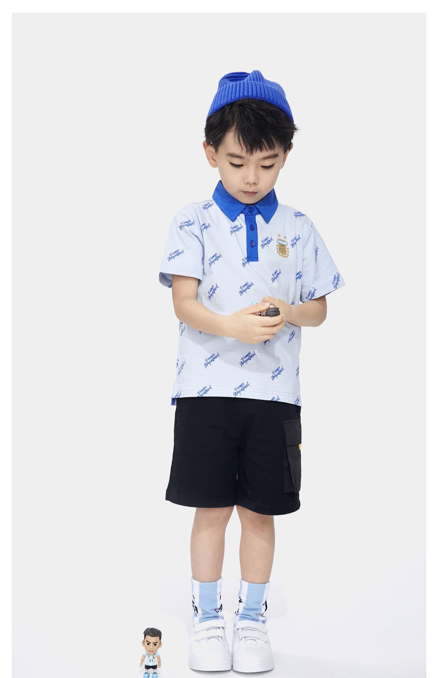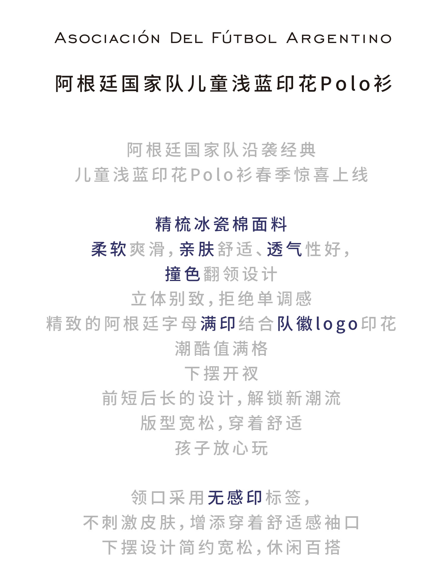 阿根廷国家队官方童装丨儿童字母蓝色花纹polo衫男童短袖足球夏装