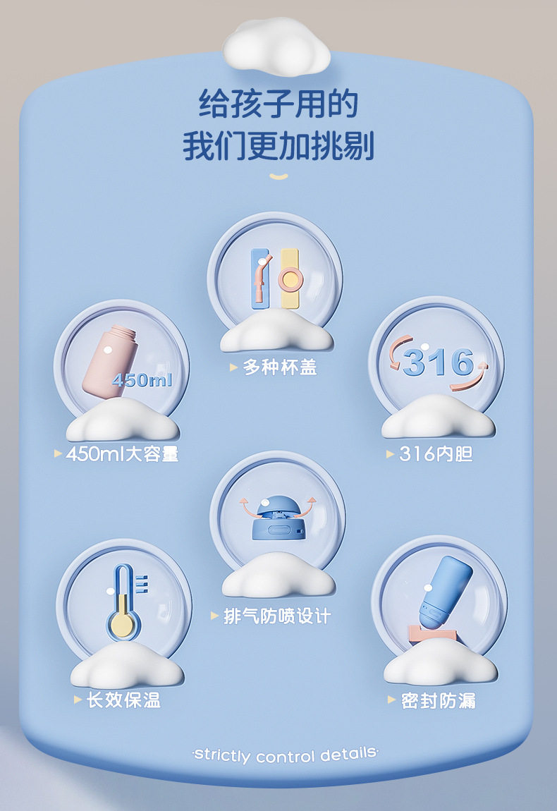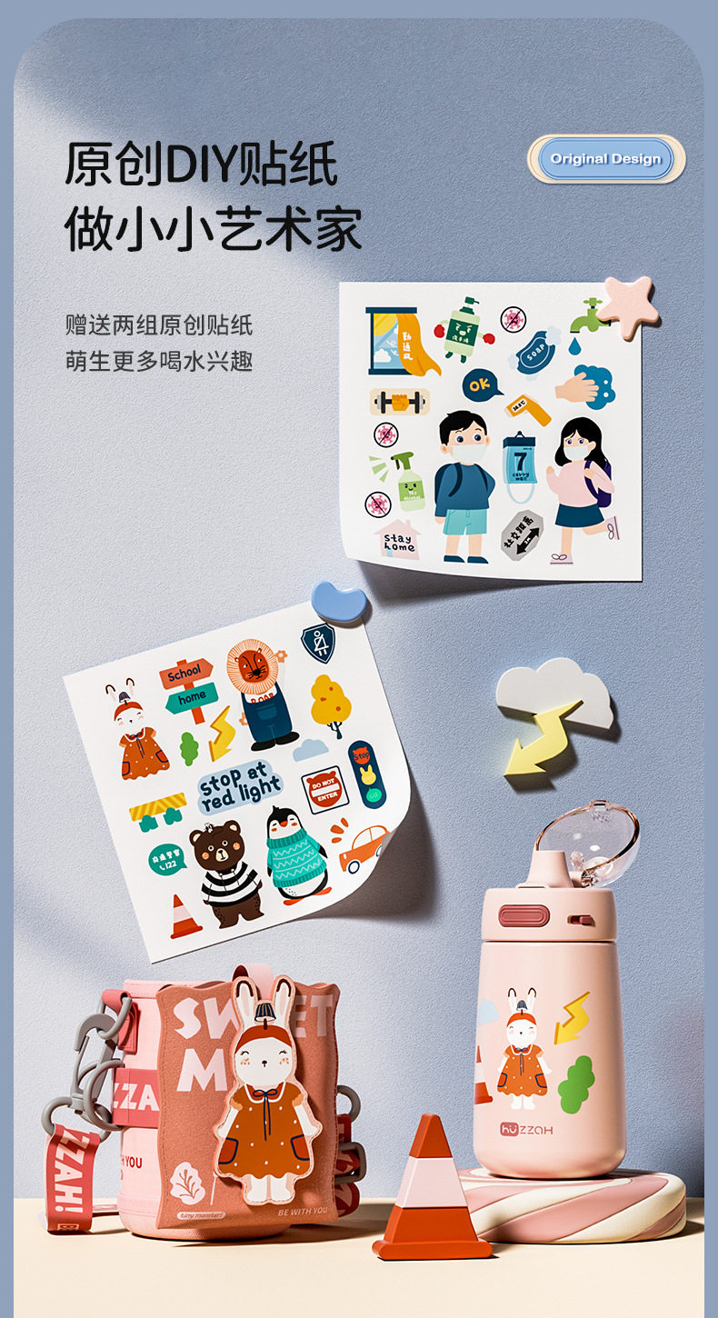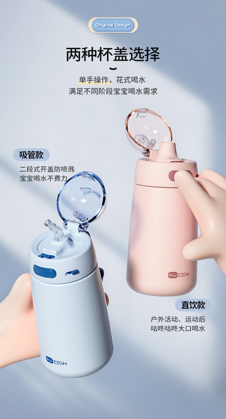 316不锈钢儿童保温杯学生上学专用水杯宝宝吸管水壶卡通保温杯