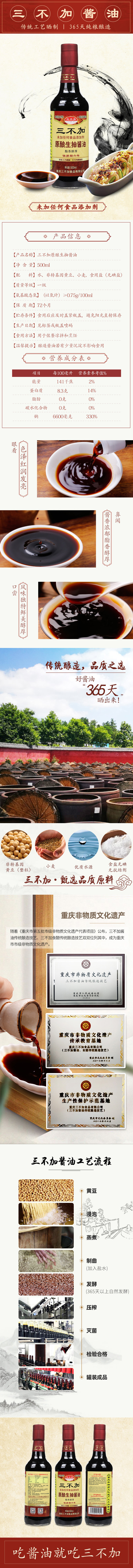 【重庆市非物质文化遗产】三不加原酿生抽酱油500ml,三瓶组合装更优惠!365天纯粮酿造,保质期六年