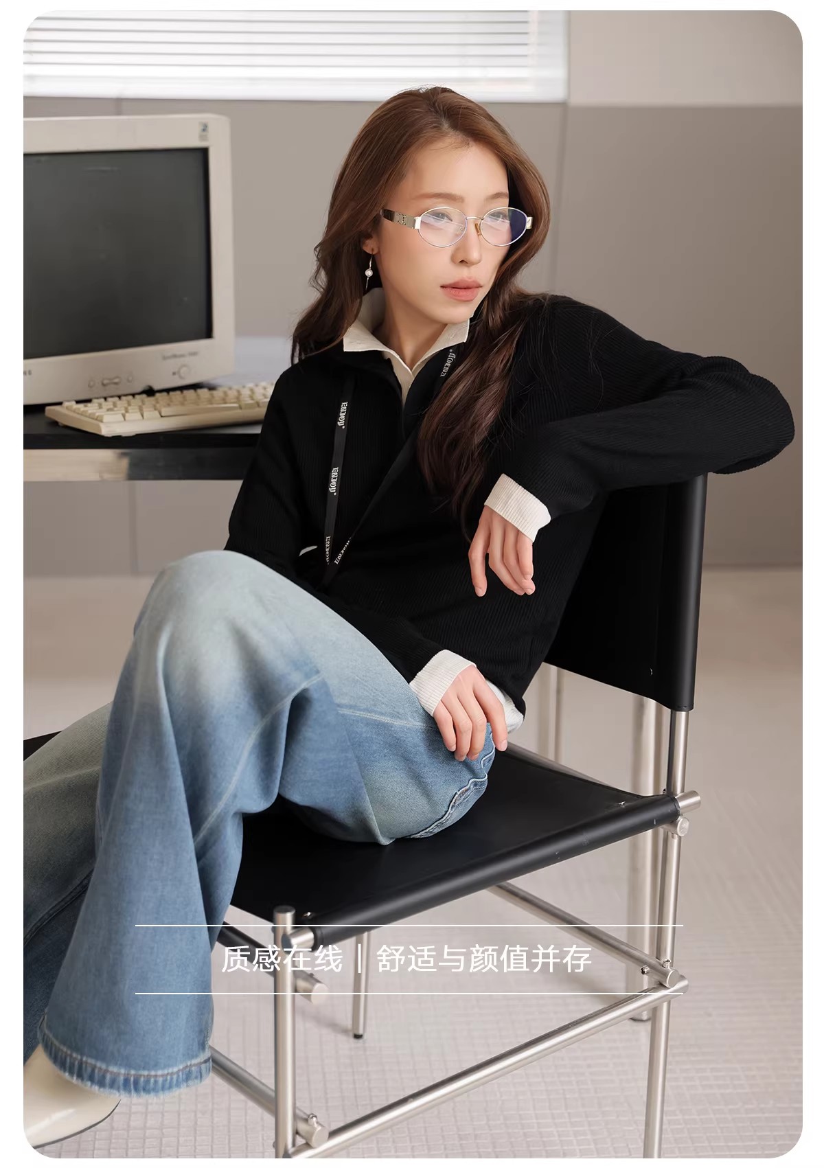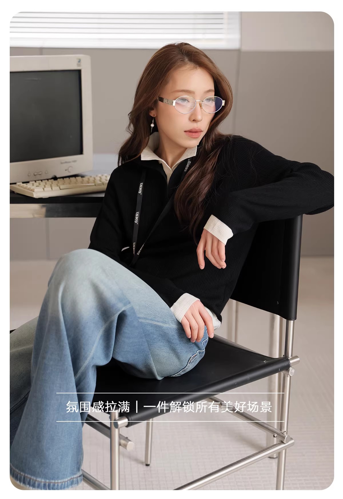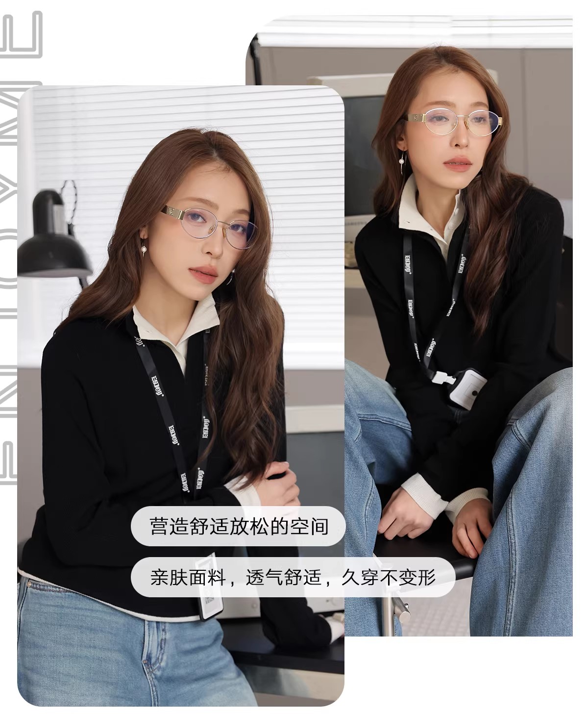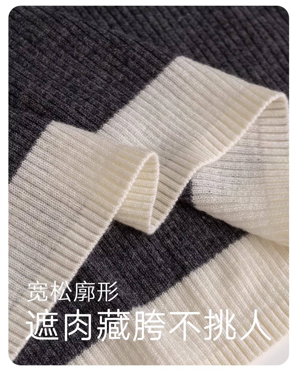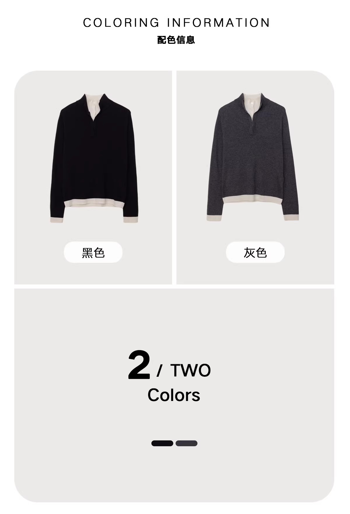 【门店同款】ENJOY春季“柔权主义”双色拼接高领针织上衣 169253142