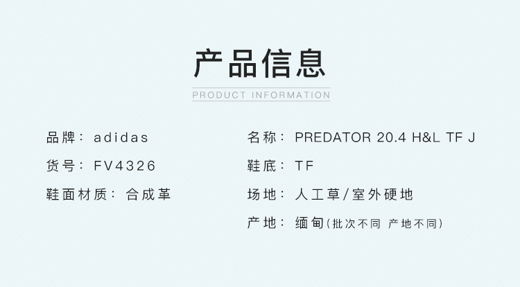 Adidas阿迪达斯猎鹰 20.4 TF碎钉儿童足球鞋FV4326