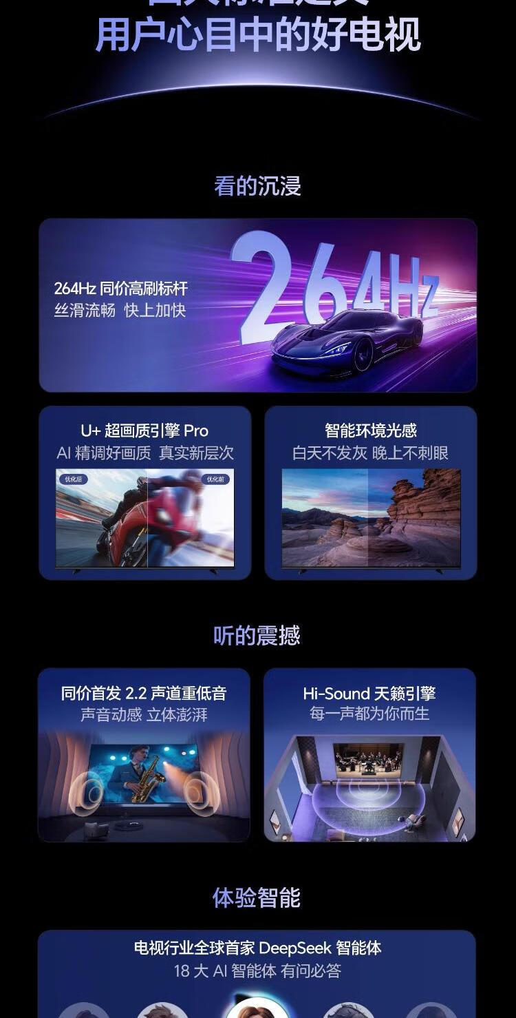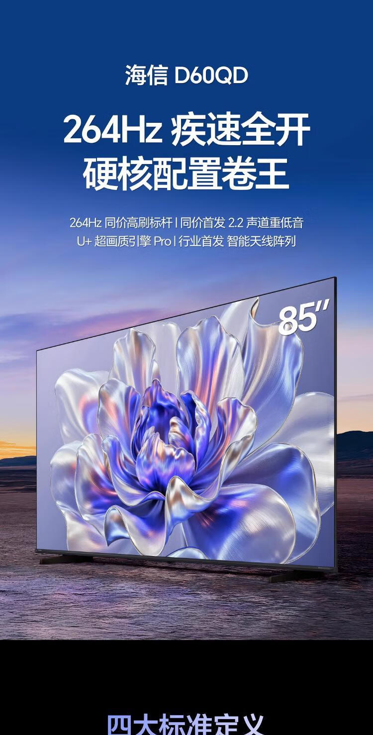 海信电视 85D60QD 264Hz高刷 DeepSeek AI智慧超薄大屏平板电视机 以旧换新